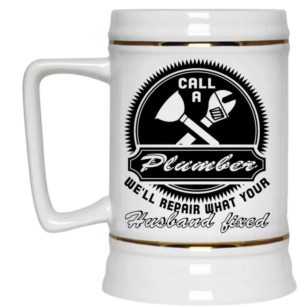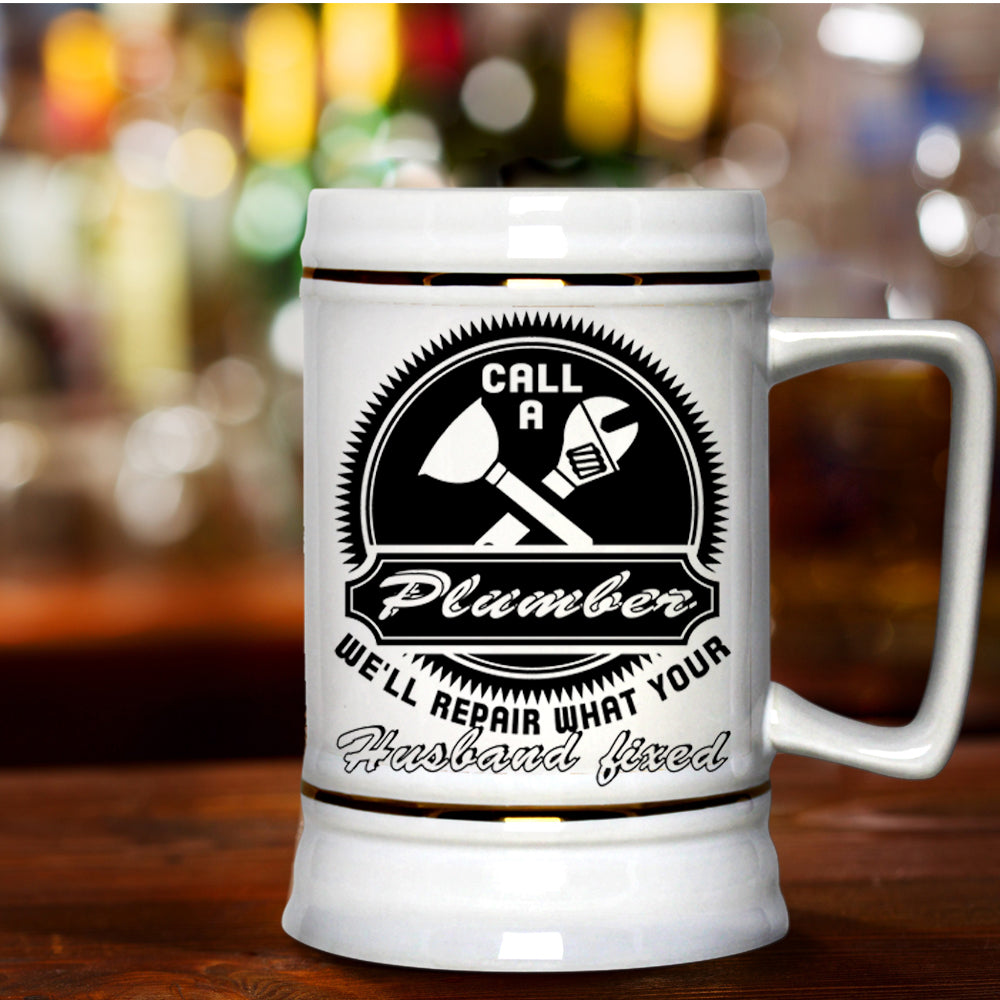 Gift For My Husband Beer Stein 22oz, Call A Plumber Beer Mug