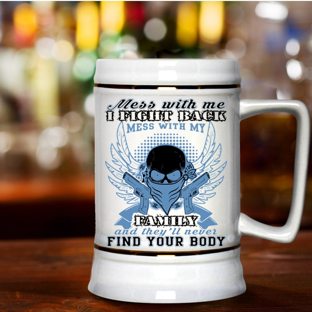 Gift For My Husband Beer Stein 22oz, Don't Mess With My Family Beer Mug