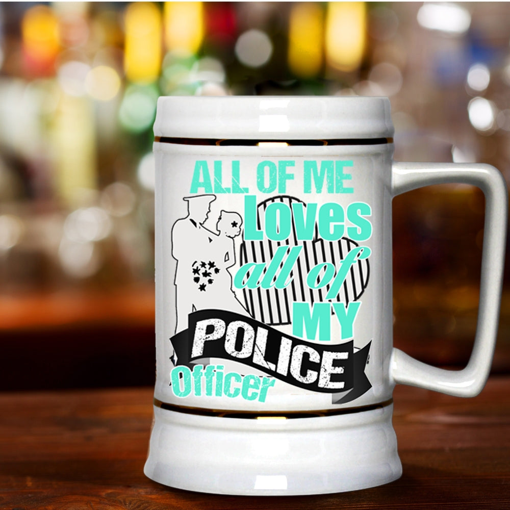 Gift For Police's Wife Beer Stein 22oz, All Of Me Loves All Of My Police Officer Beer Mug