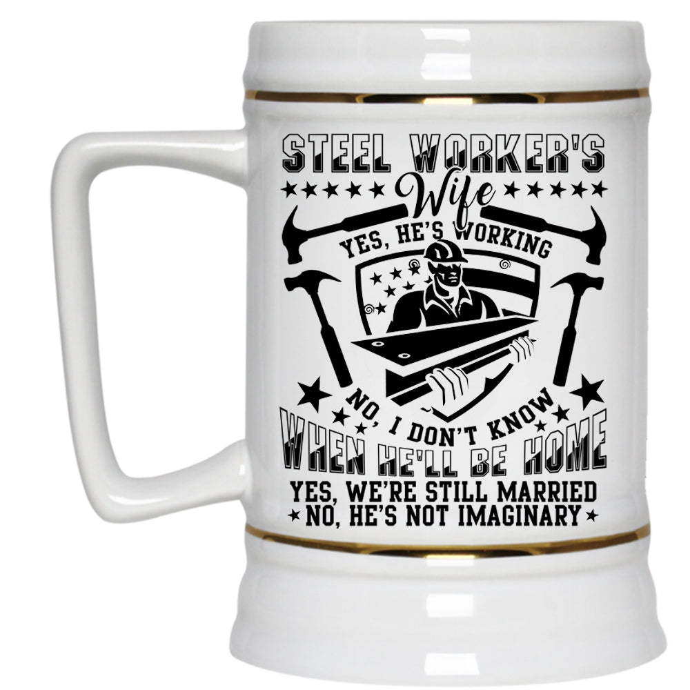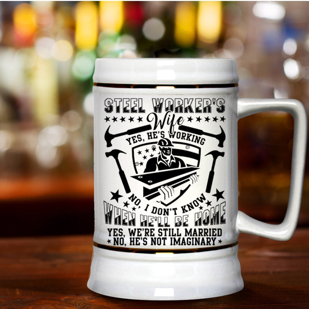 Gift For Wedding Beer Stein 22oz, Steel Worker's Wife Beer Mug