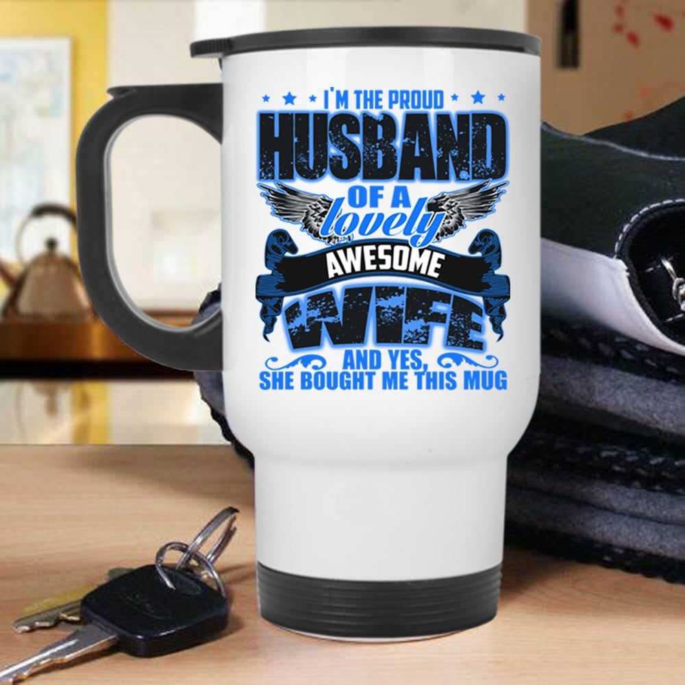 Gift For Wedding Travel Mug, I'm The Proud Husband Of A Lovely Wife Mug