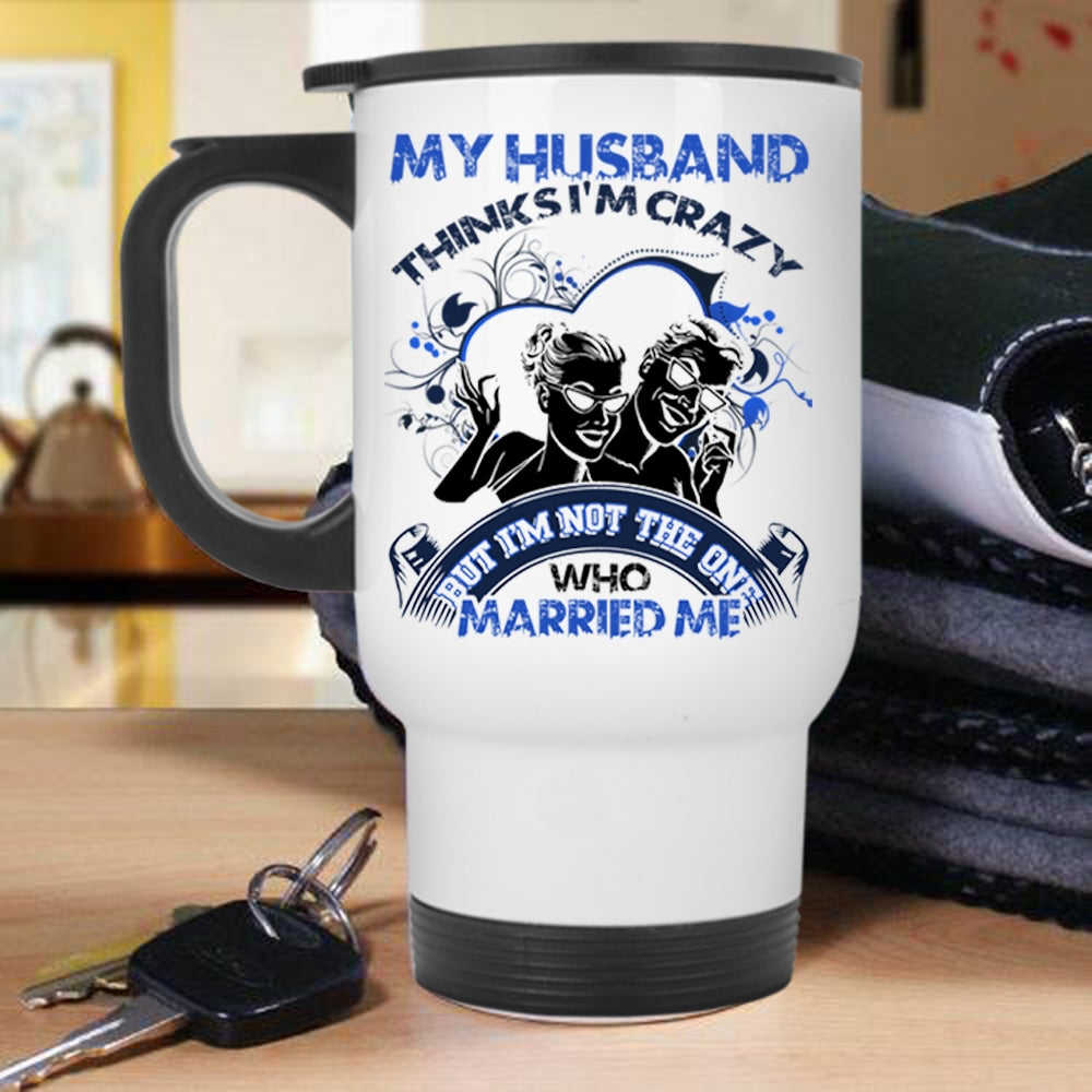 Gift For Wedding Travel Mug, My Husband Thinks I'm Crazy Mug