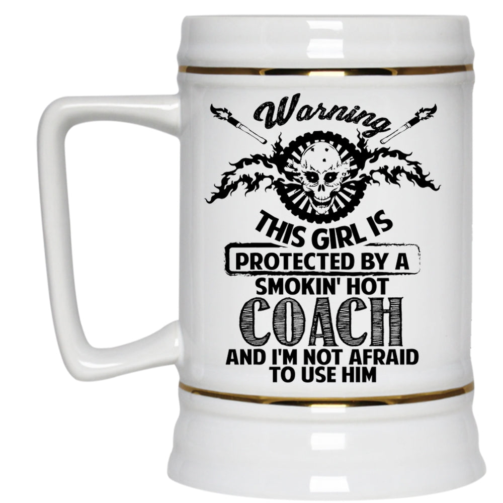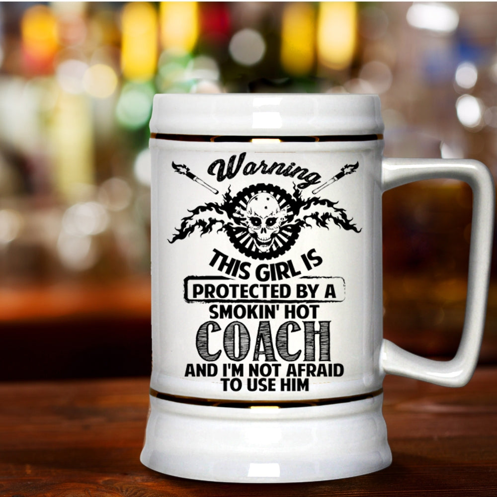 Gift For Wife Beer Stein 22oz, This Girl Is Protected By A Hot Coach Beer Mug