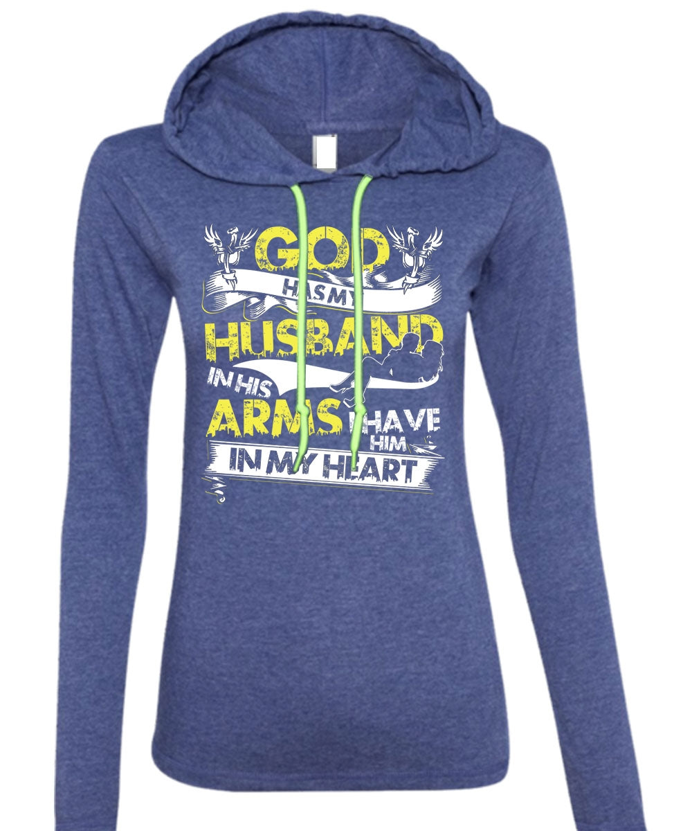 God Has My Husband T Shirt, I Have Him In My Heart T Shirt (Anvil Ladies Ringspun Hooded)