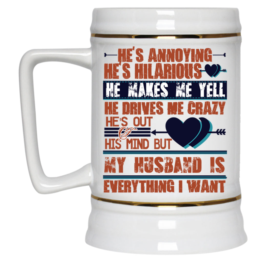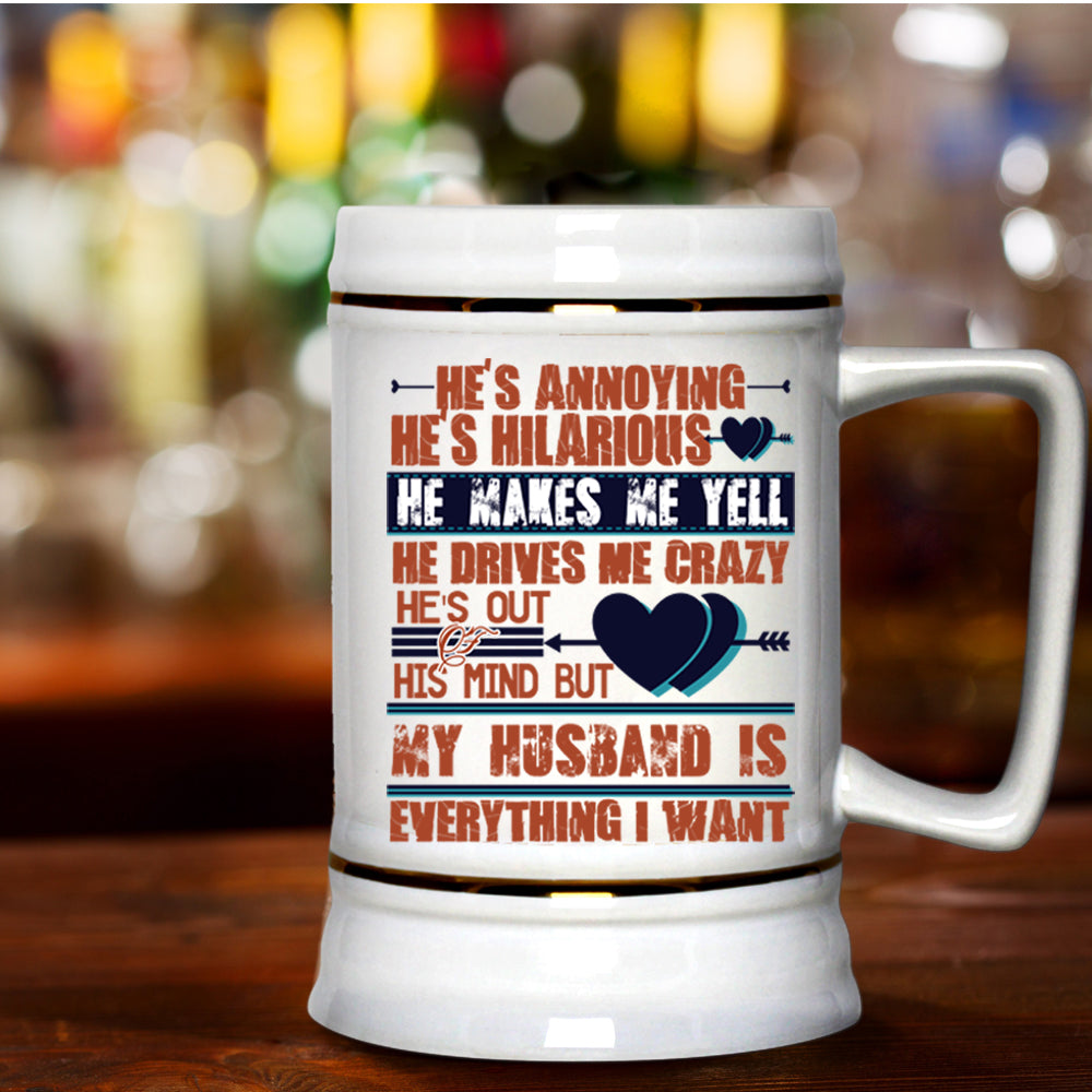 Handsome Husband Beer Stein 22oz, My Husband Is Everything I Want Beer Mug