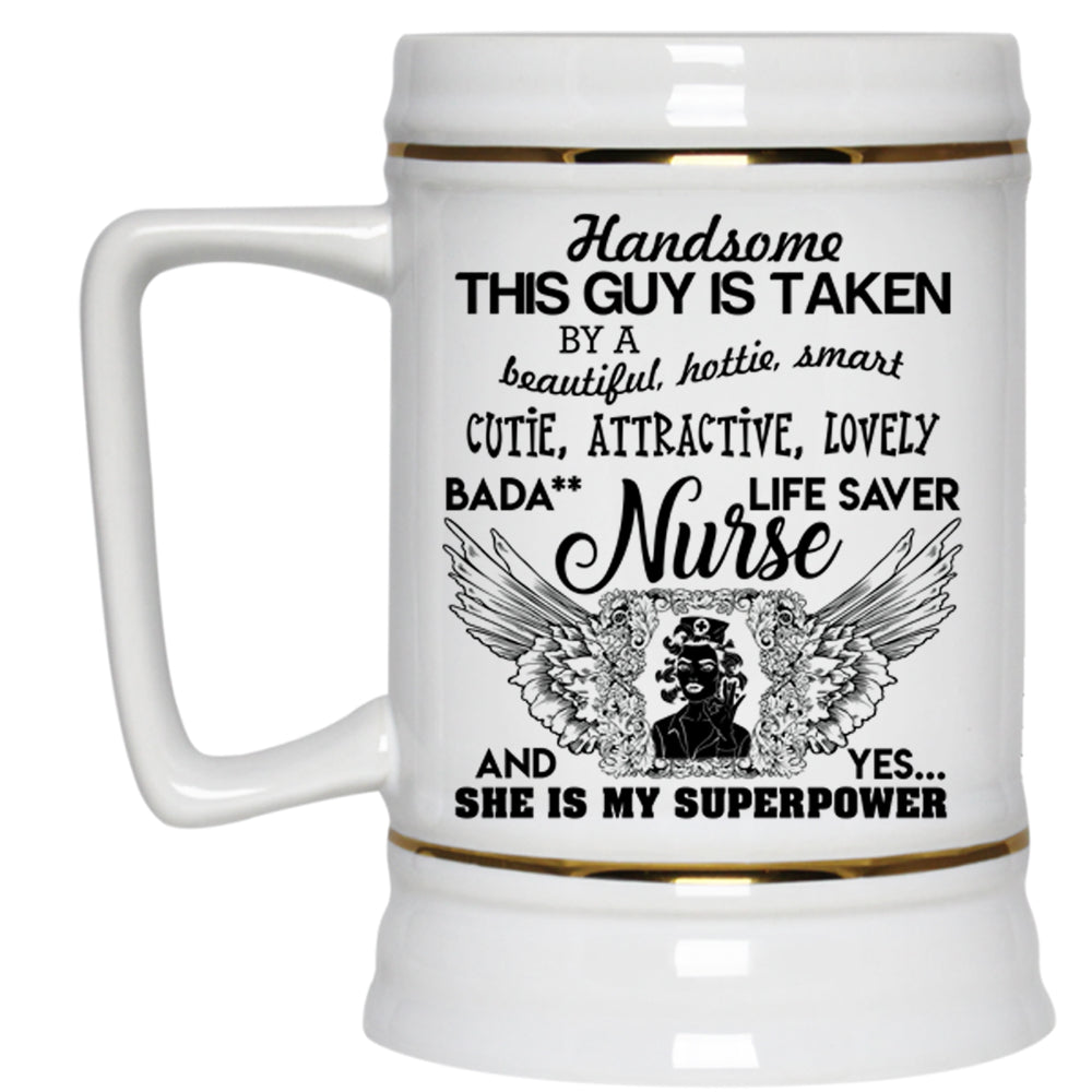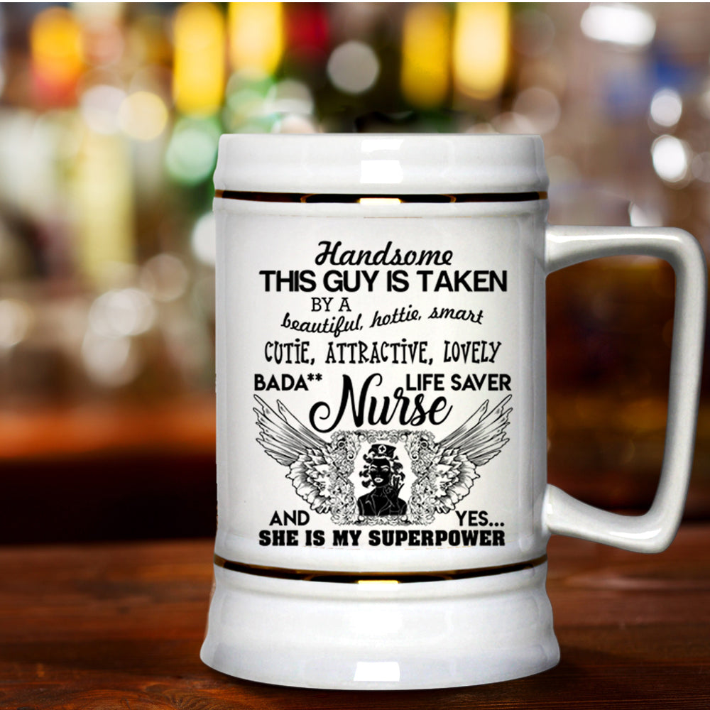 Handsome Husband Beer Stein 22oz, This Guy Is Taken By A Beautiful Nurse Beer Mug