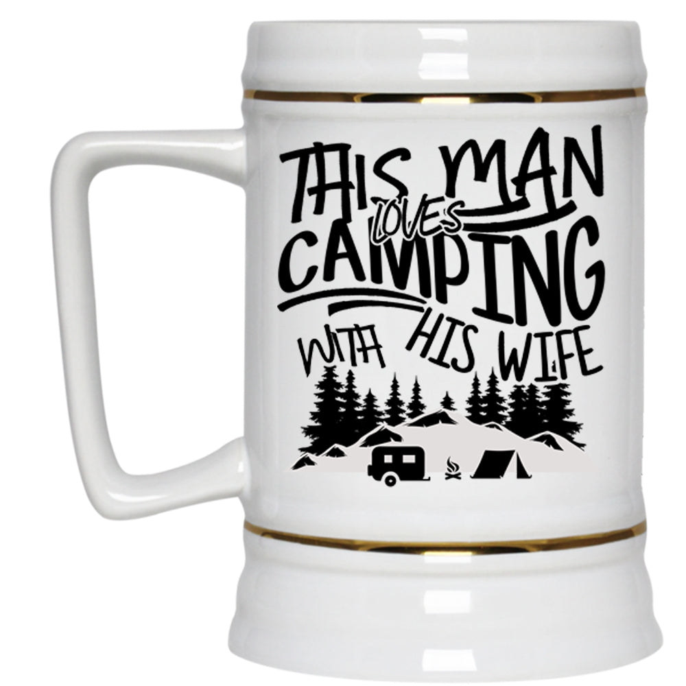 Handsome Husband Beer Stein 22oz, This Man Loves Camping With His Wife Beer Mug