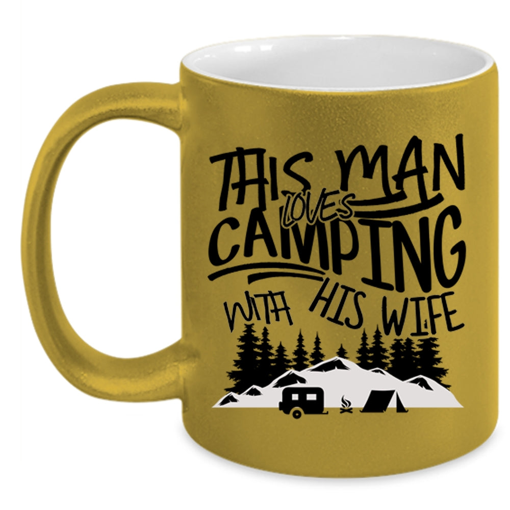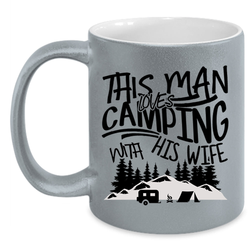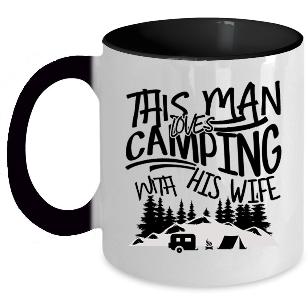 Handsome Husband Coffee Mug, This Man Loves Camping With His Wife Accent Mug