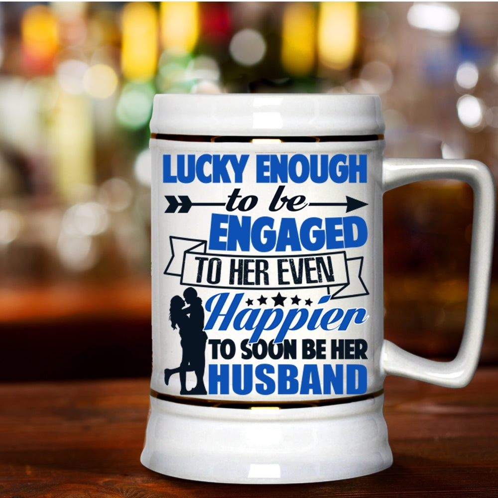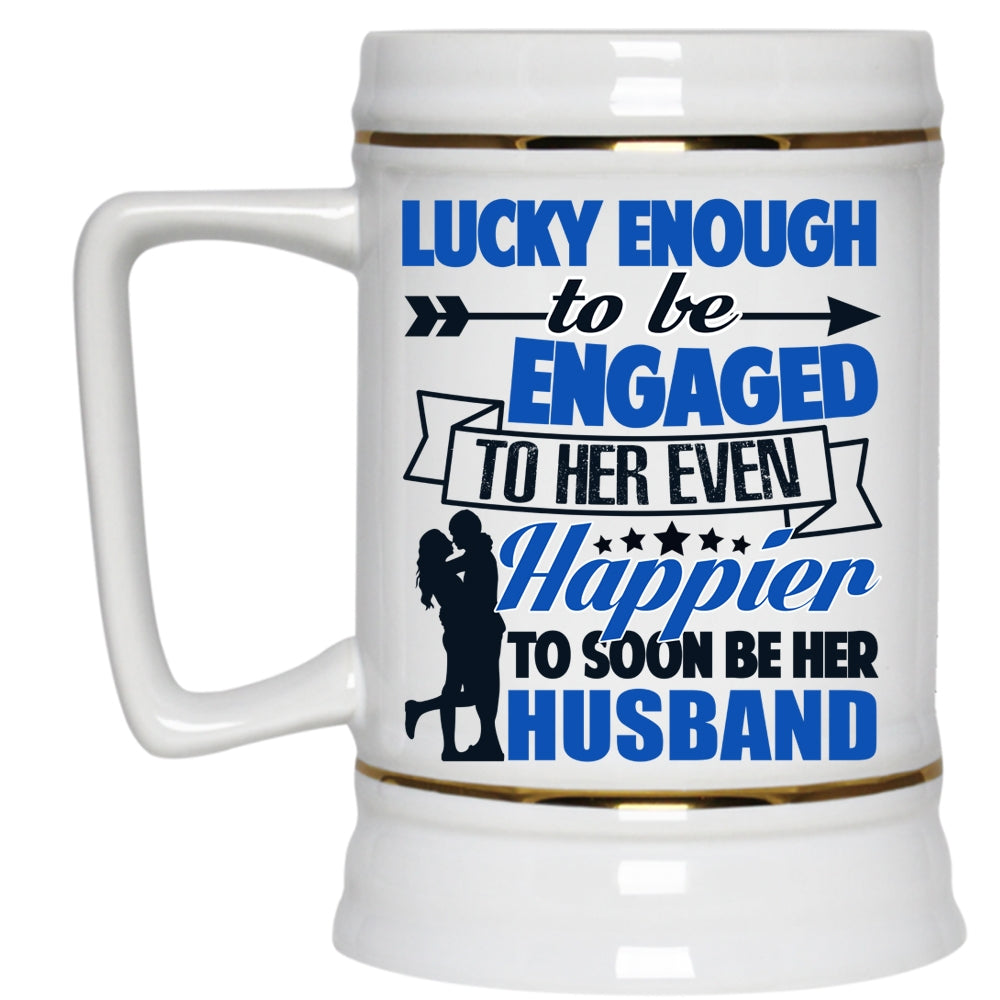 Happier To Soon Be Her Husband Beer Stein 22oz, To Be Engaged To Her Even Beer Mug