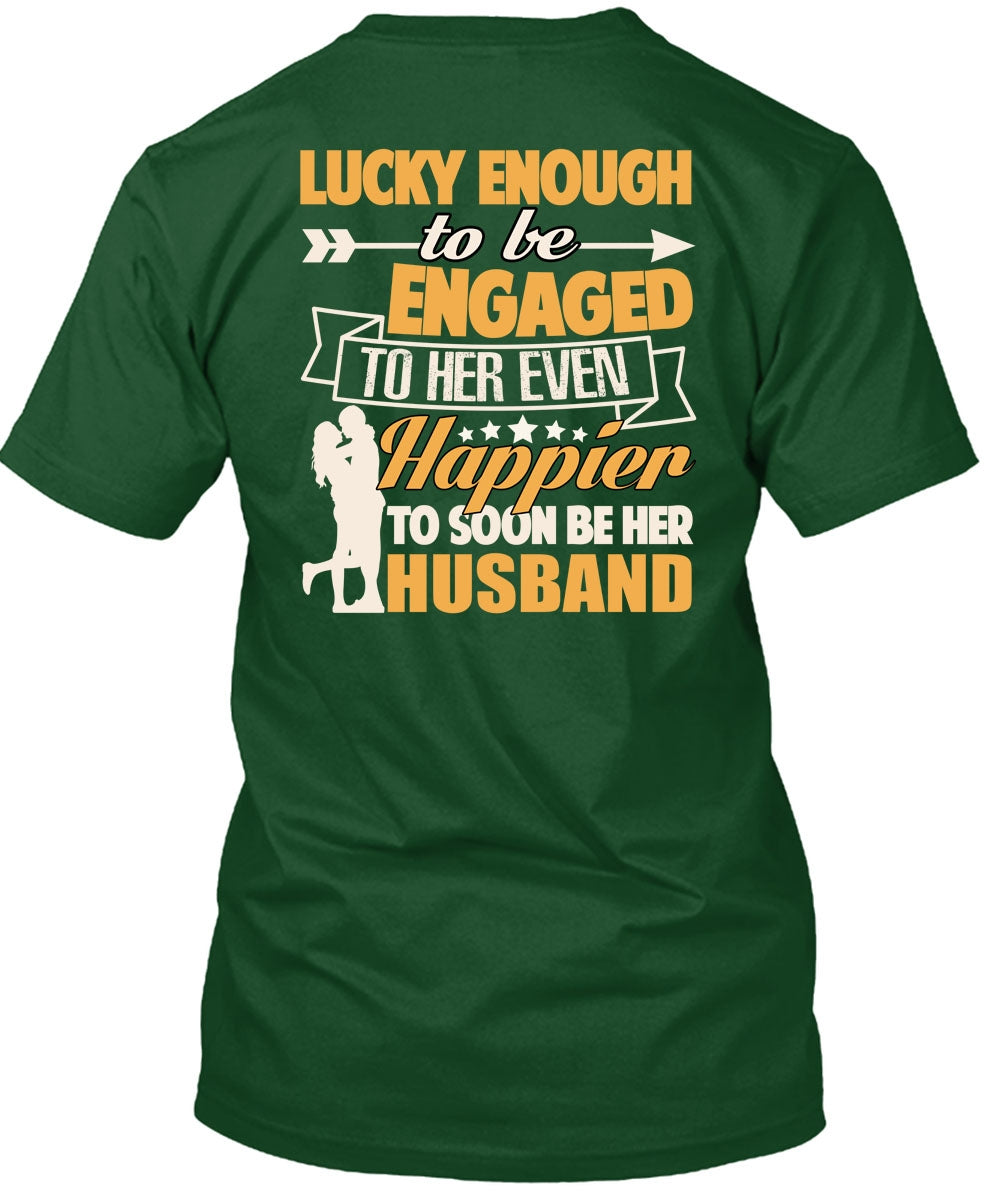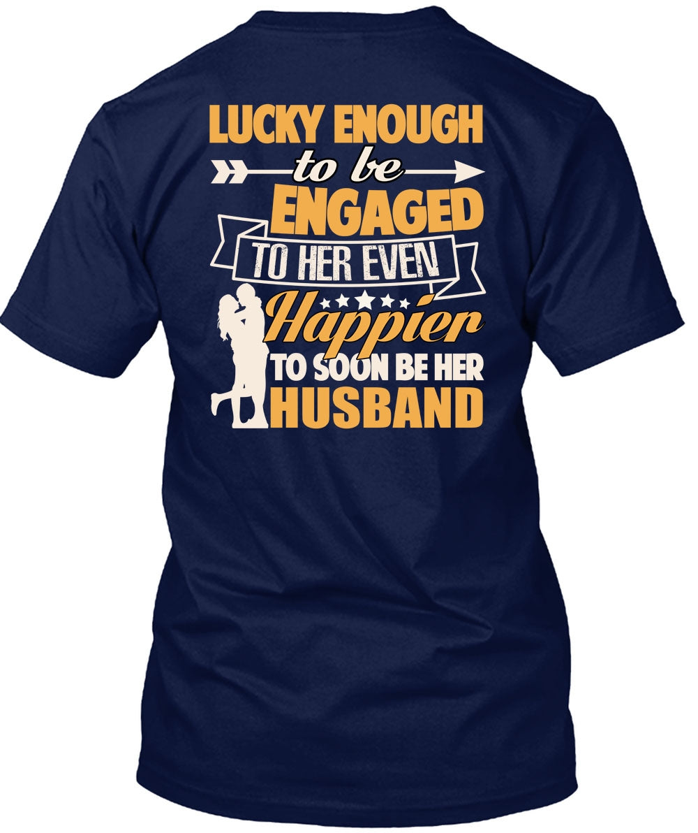 Happier To Soon Be Her Husband T Shirt, Lucky Enough To Be Engaged T Shirt