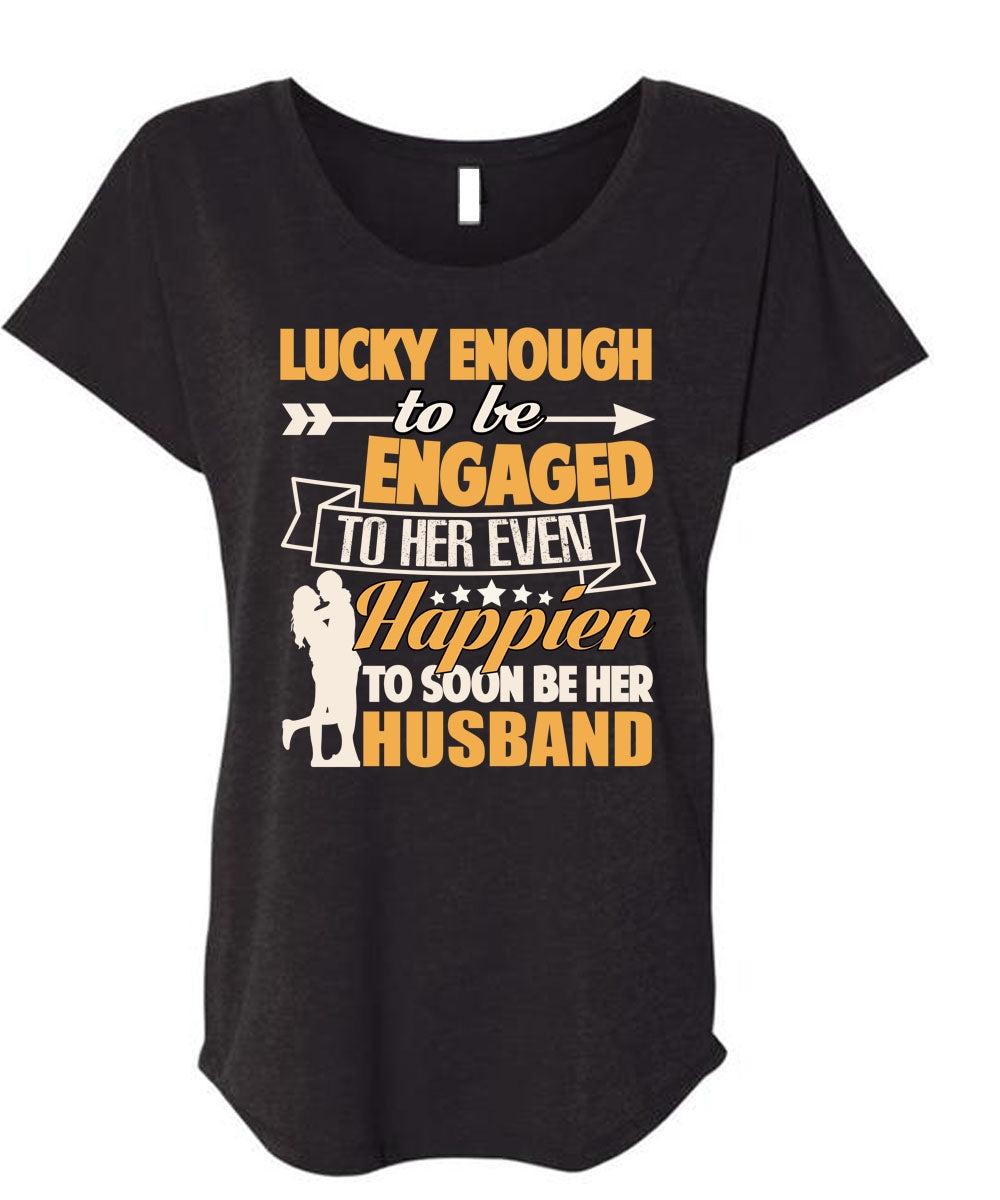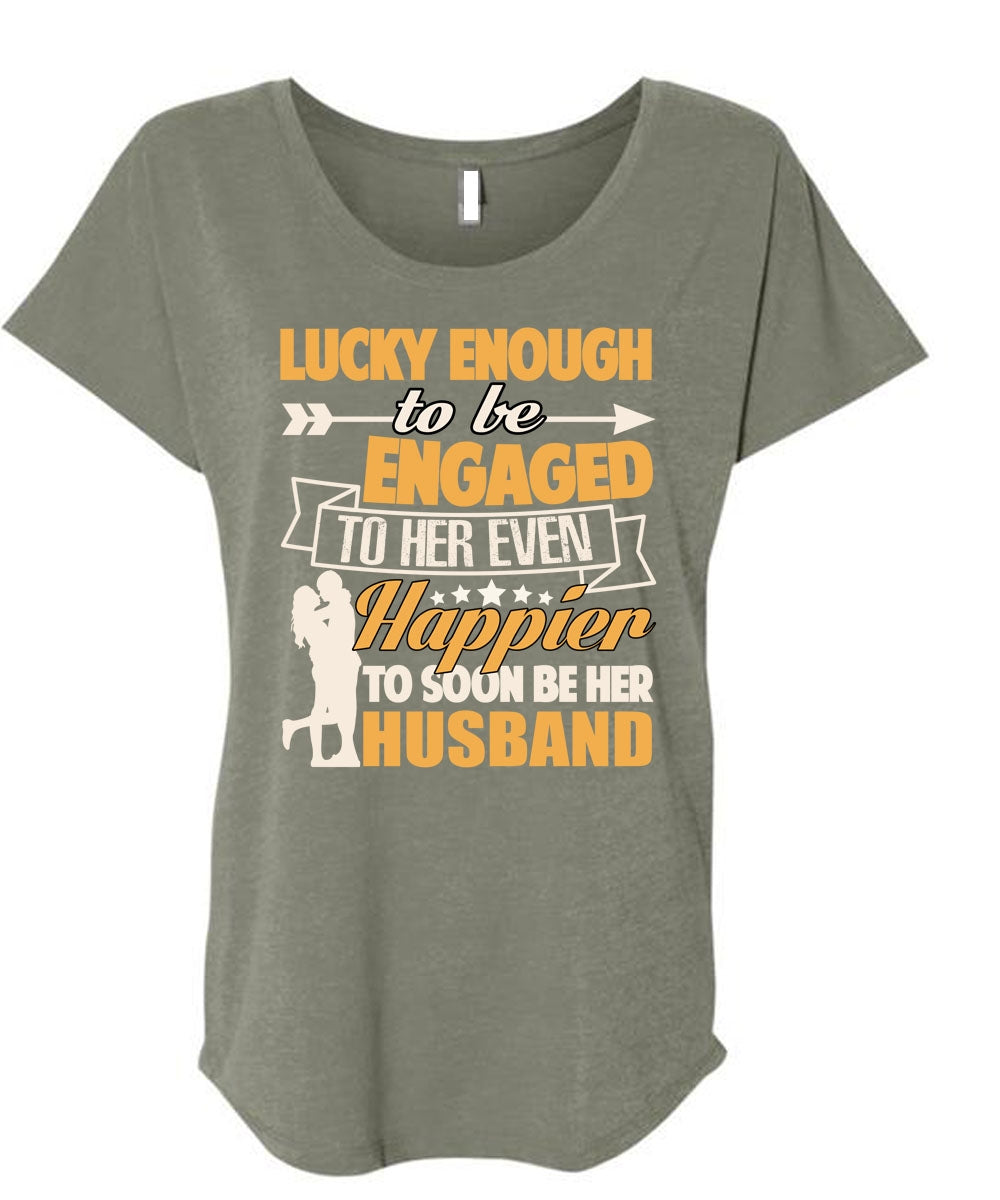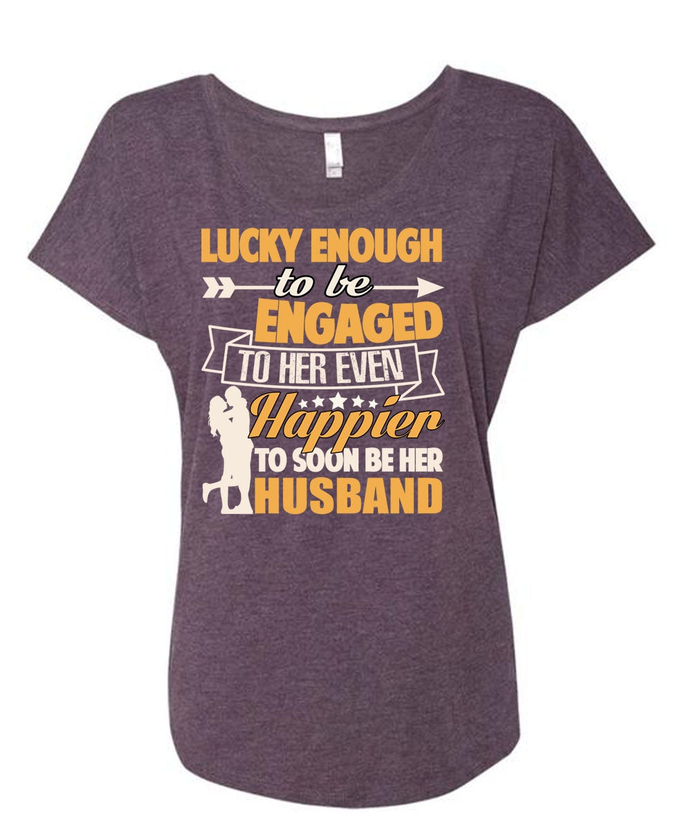 Happier To Soon Be Her Husband T Shirt, Lucky Enough To Be Engaged T Shirt, Cool Shirt (Ladies' Triblend Dolman Sleeve)