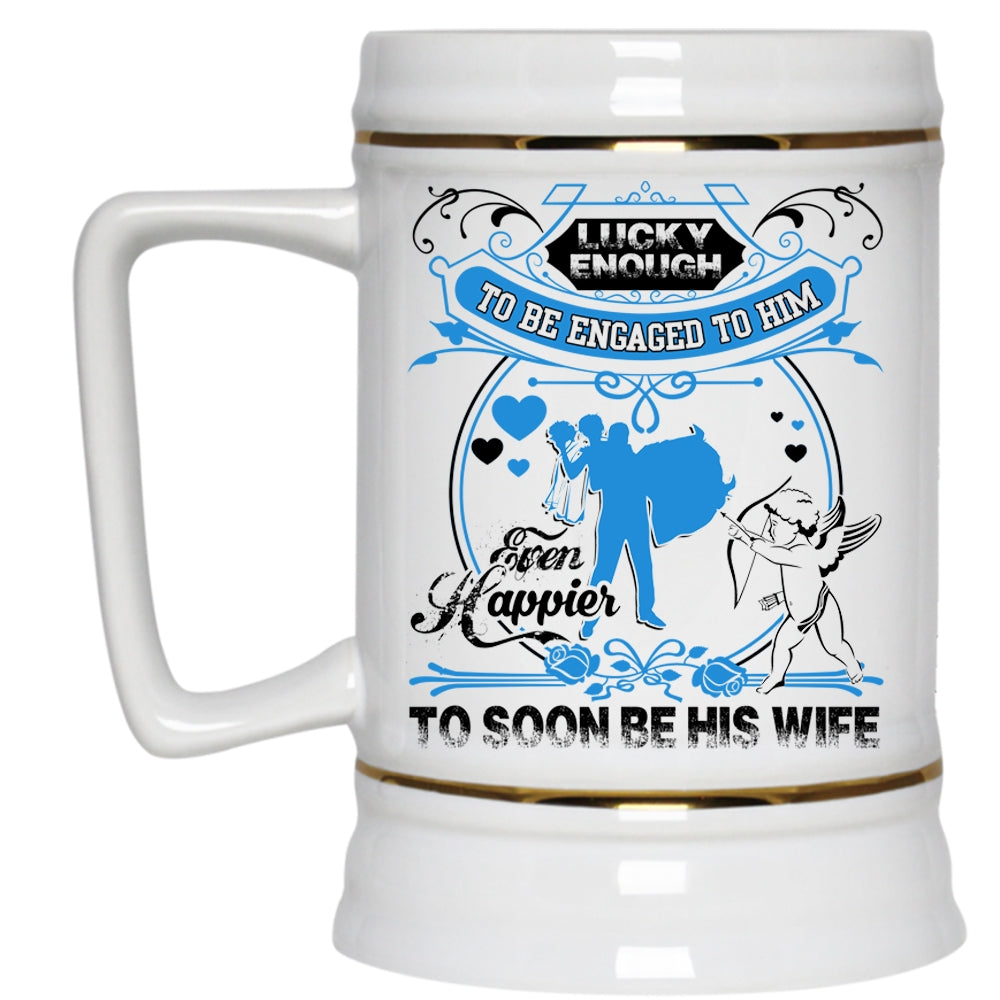 Happier To Soon Be His Wife Beer Stein 22oz, Licky Enough To Be Engaged To Him Beer Mug