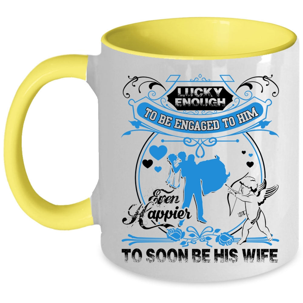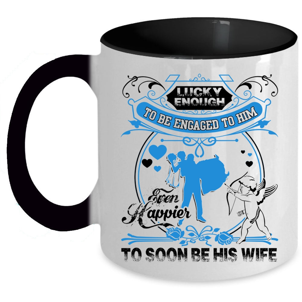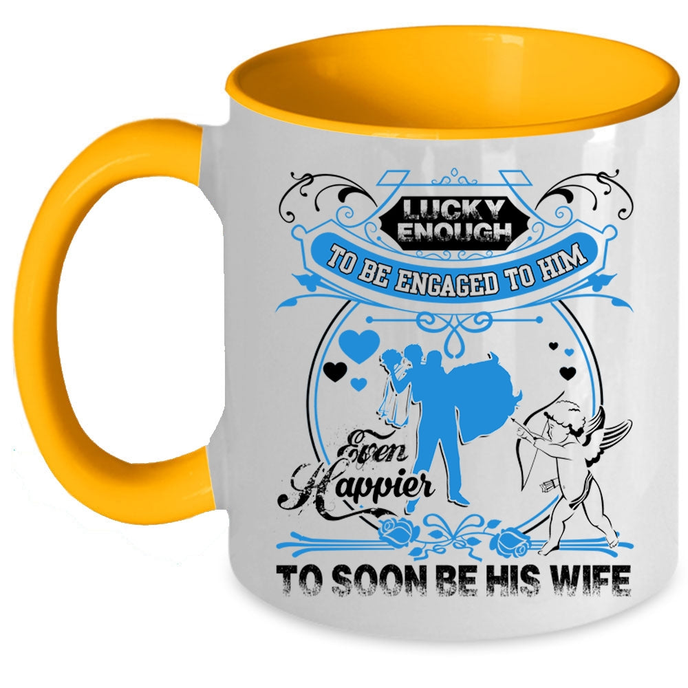 Happier To Soon Be His Wife Coffee Mug, Licky Enough To Be Engaged To Him Accent Mug