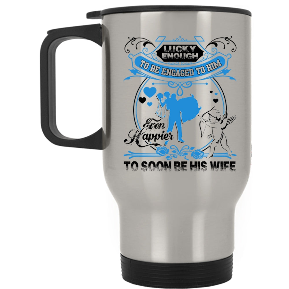 Happier To Soon Be His Wife Travel Mug, Licky Enough To Be Engaged To Him Mug