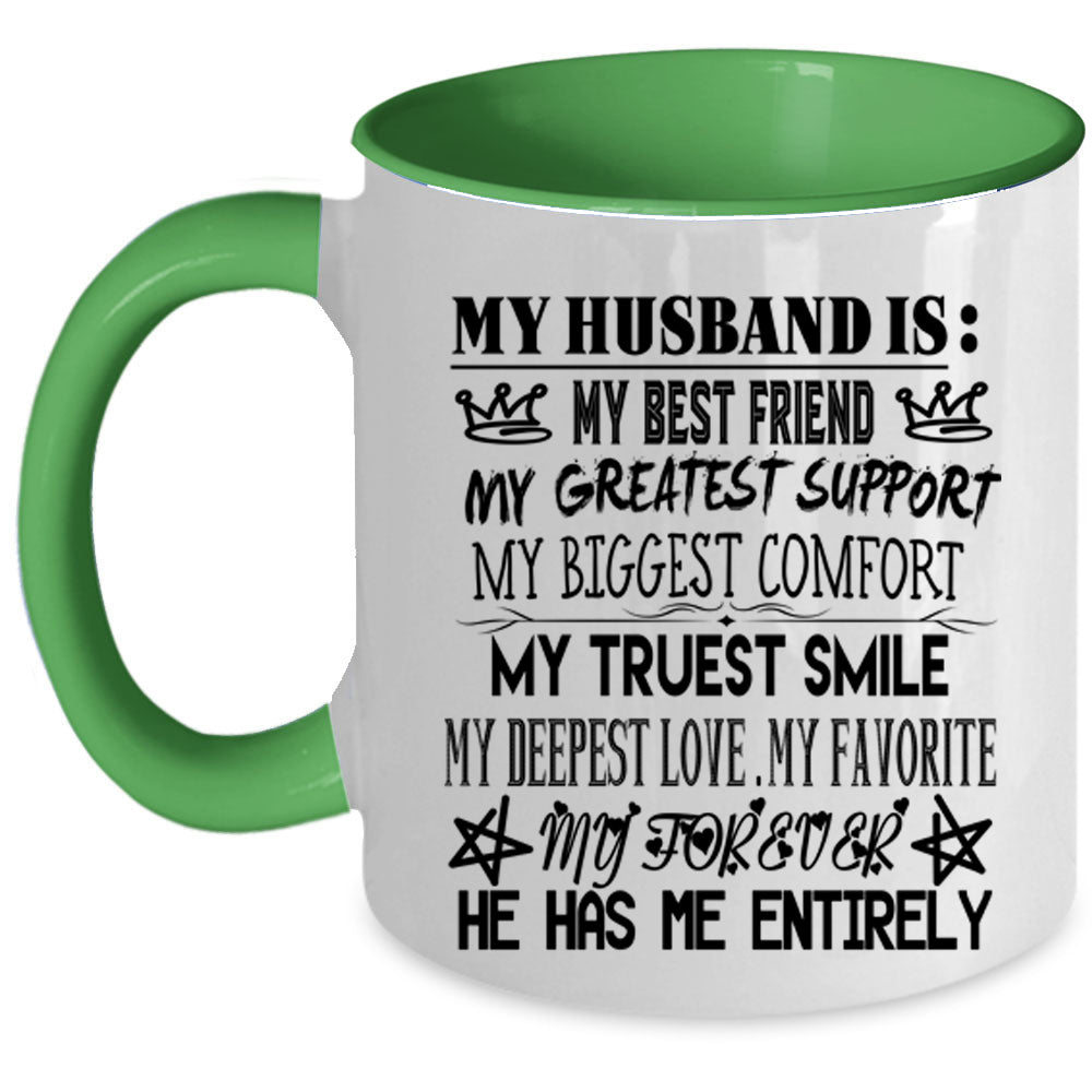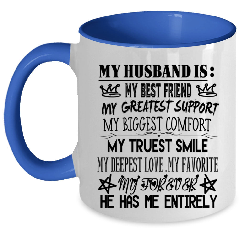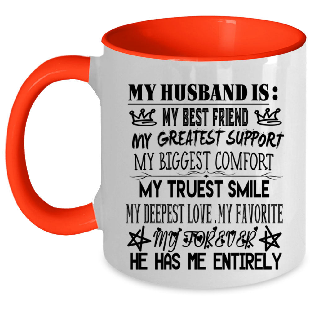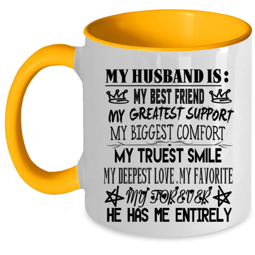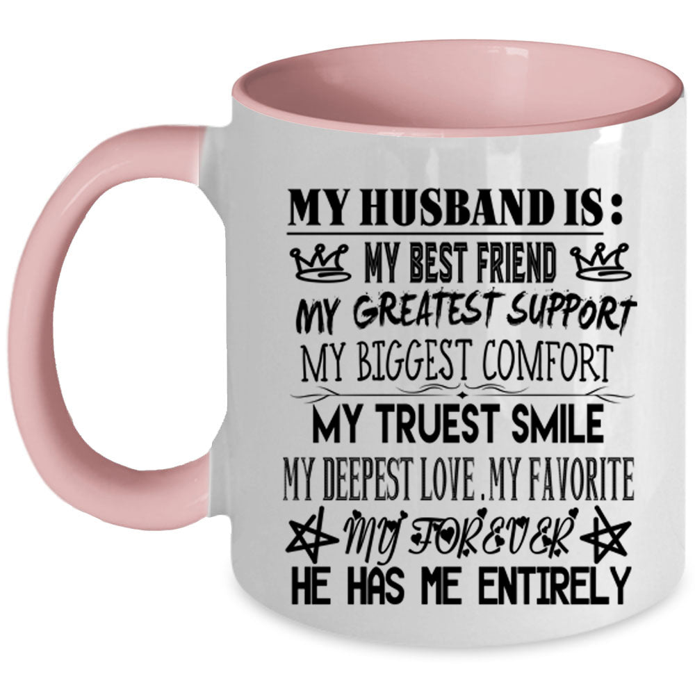 He Has Me Entirely Coffee Mug, My Husband Is My Best Friend Accent Mug