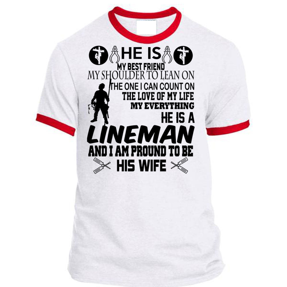 He Is A Line man And I Am Proud To Be His Wife T Shirt, Being An Lineman T Shirt, Awesome T-Shirts