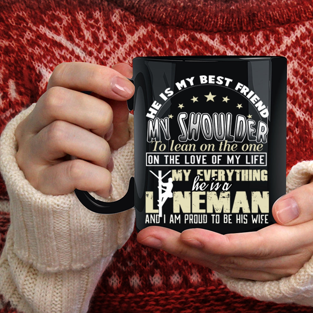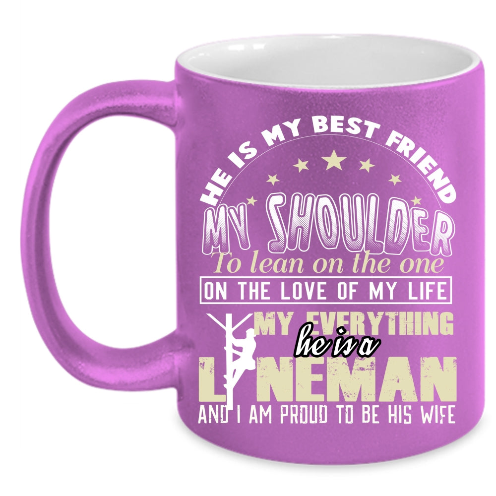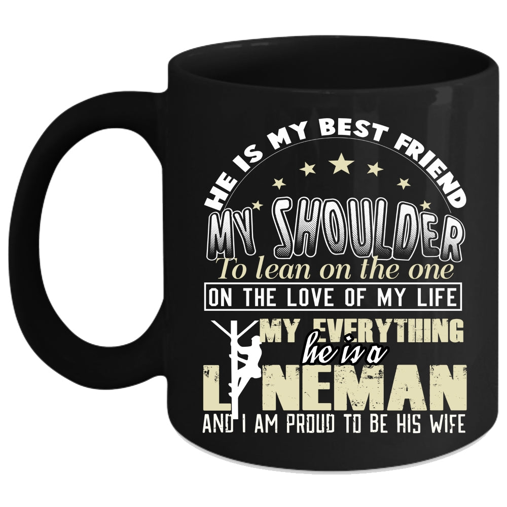 He Is A Lineman Coffee Mug, I Am Proud To Be His Wife Coffee Cup