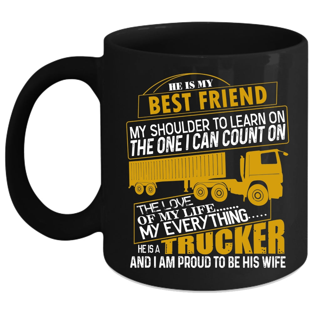 He Is A Trucker Coffee Mug, I Am Proud To Be His Wife Coffee Cup