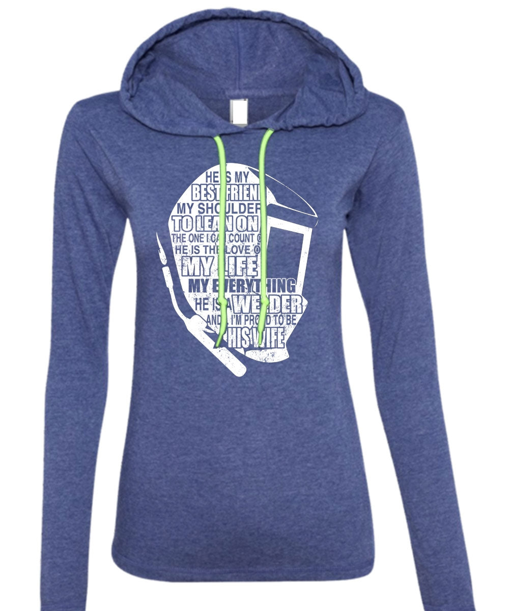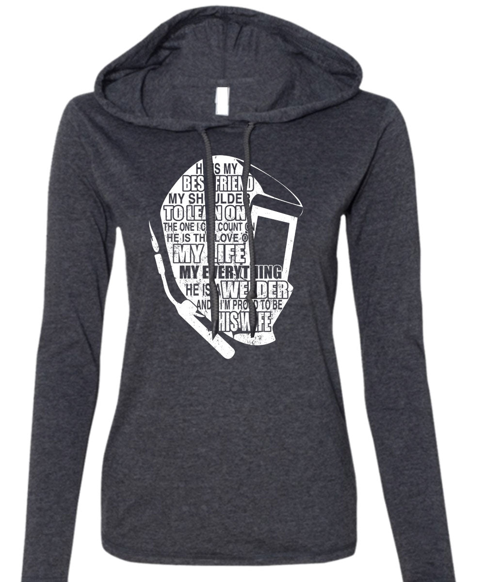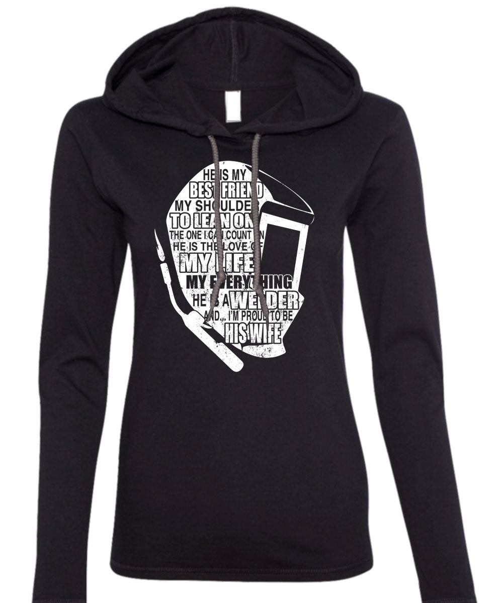 He Is A Welder T Shirt, I'm Proud To Be His Wife T Shirt (Anvil Ladies Ringspun Hooded)