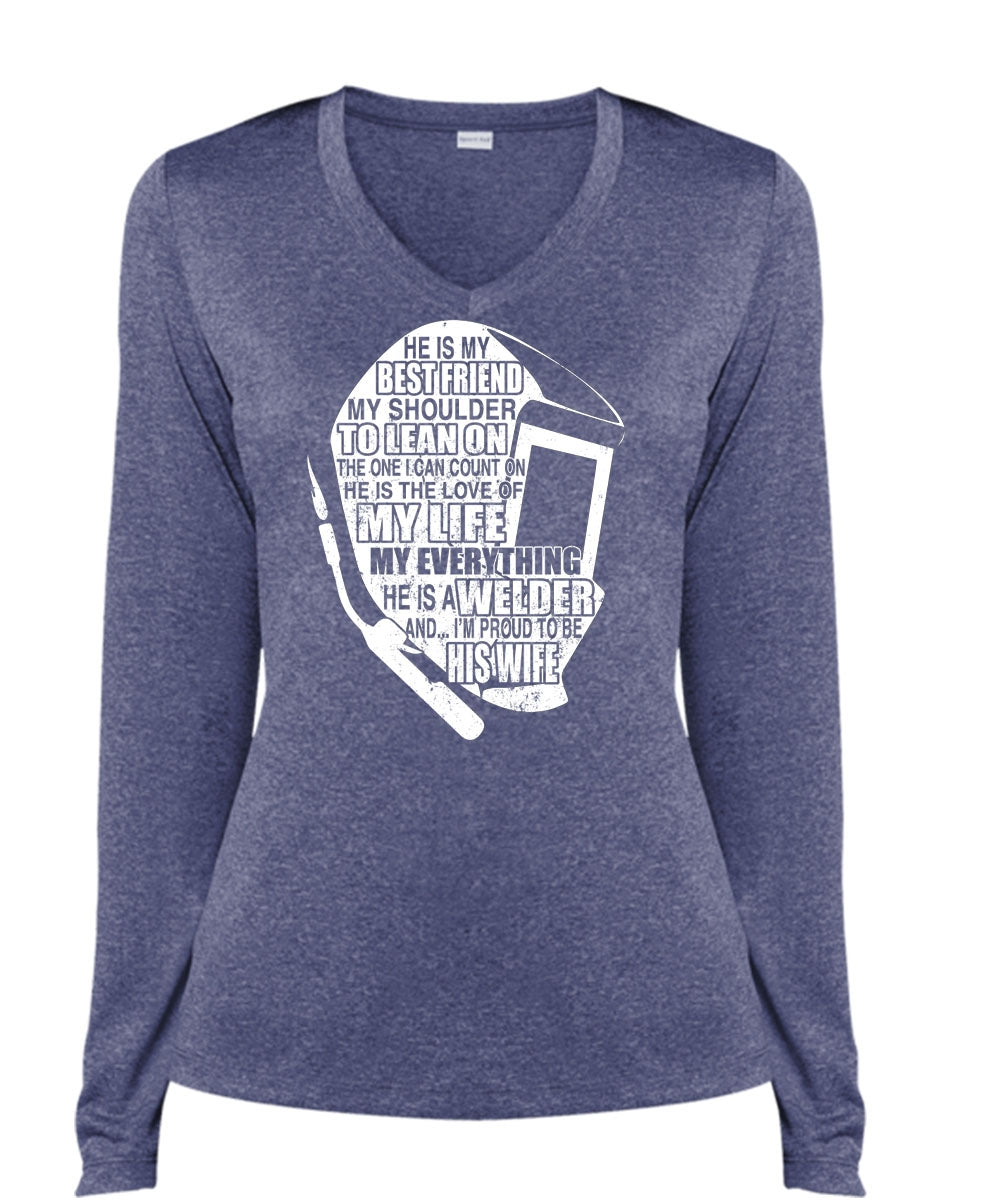 He Is A Welder T Shirt, I'm Proud To Be His Wife T Shirt, Cool Shirt (Ladies LS Heather V-Neck)