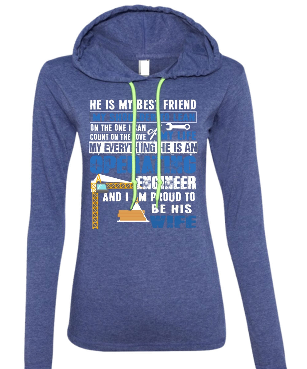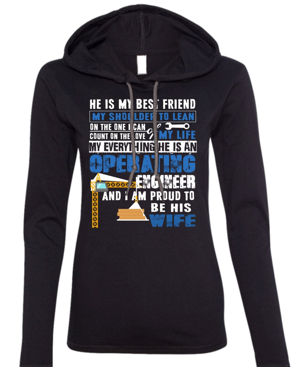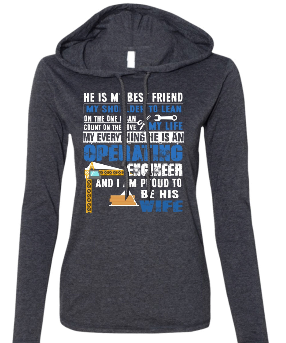 He Is An Operating Engineer T Shirt, I Am Proud To Be His Wife T Shirt (Anvil Ladies Ringspun Hooded)
