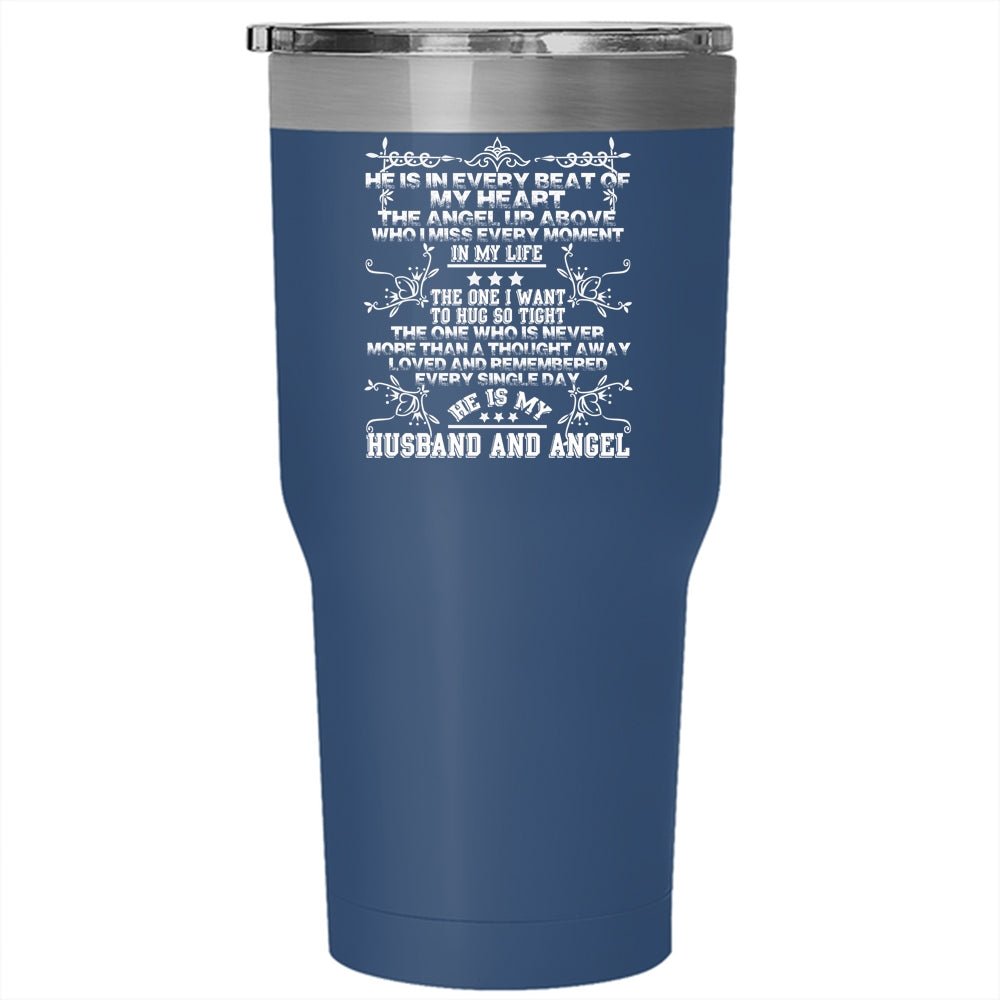He Is Every Beat Of My Heart Tumbler 30 oz Stainless Steel, He Is My Husband And Angel Travel Mug