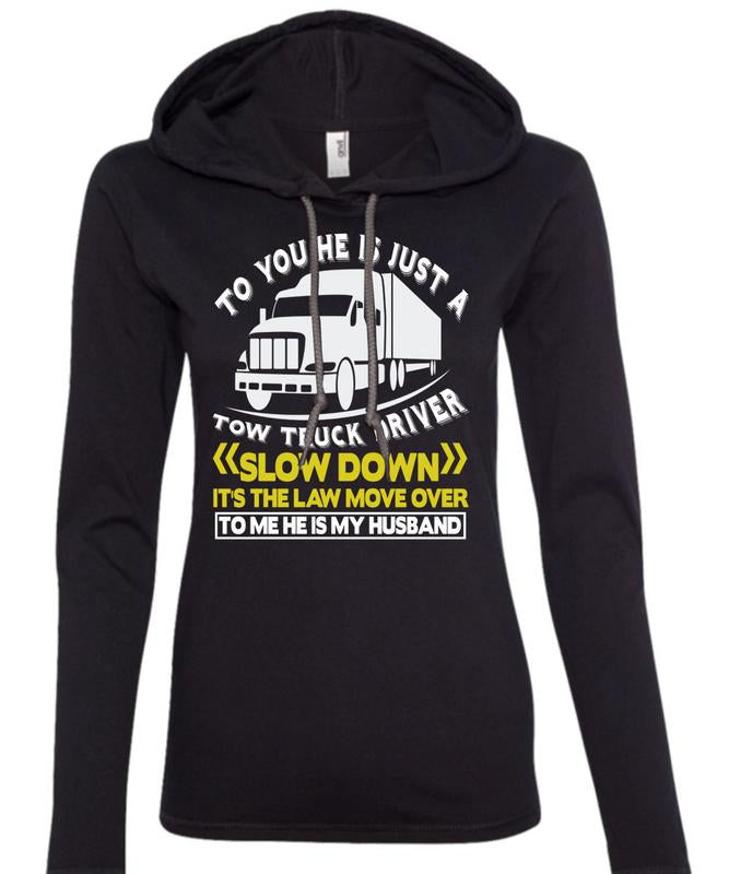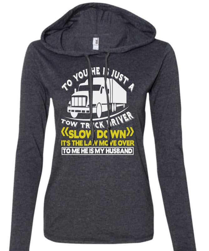 He Is Just A Tow Truck Driver T Shirt, He Is My Husband T Shirt (Anvil Ladies Ringspun Hooded)