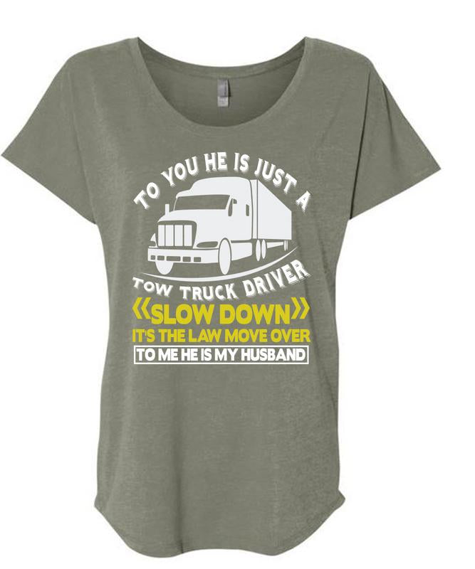 He Is Just A Tow Truck Driver T Shirt, He Is My Husband T Shirt, Cool Shirt (Ladies' Triblend Dolman Sleeve)