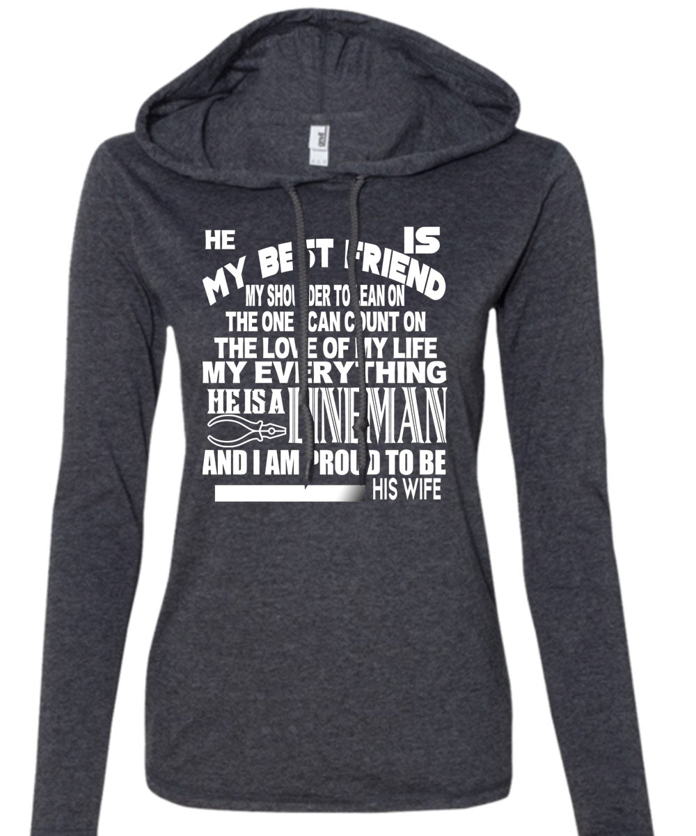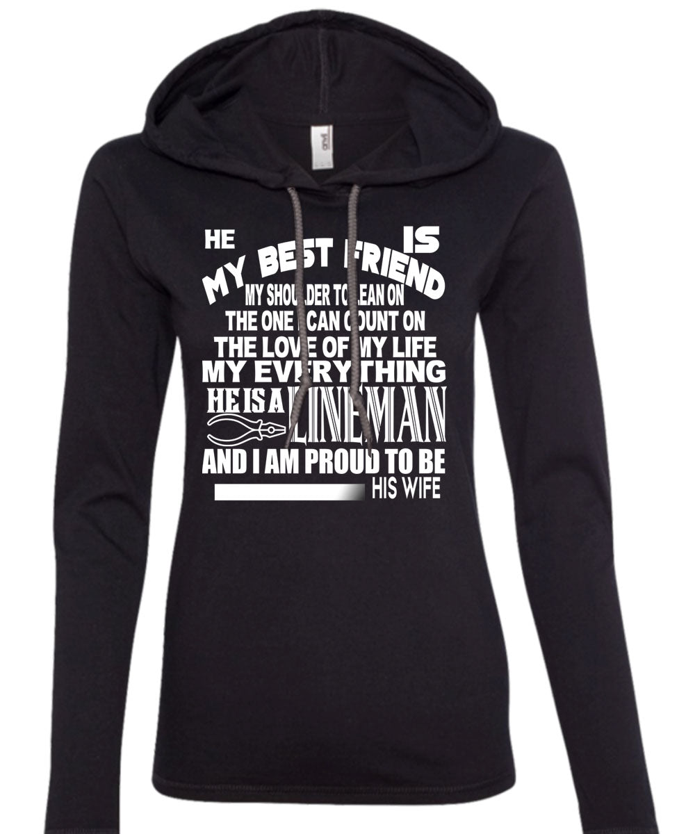 He Is My Best Friend He Is A Lineman T Shirt, I Am Proud To Be His Wife T Shirt (Anvil Ladies Ringspun Hooded)