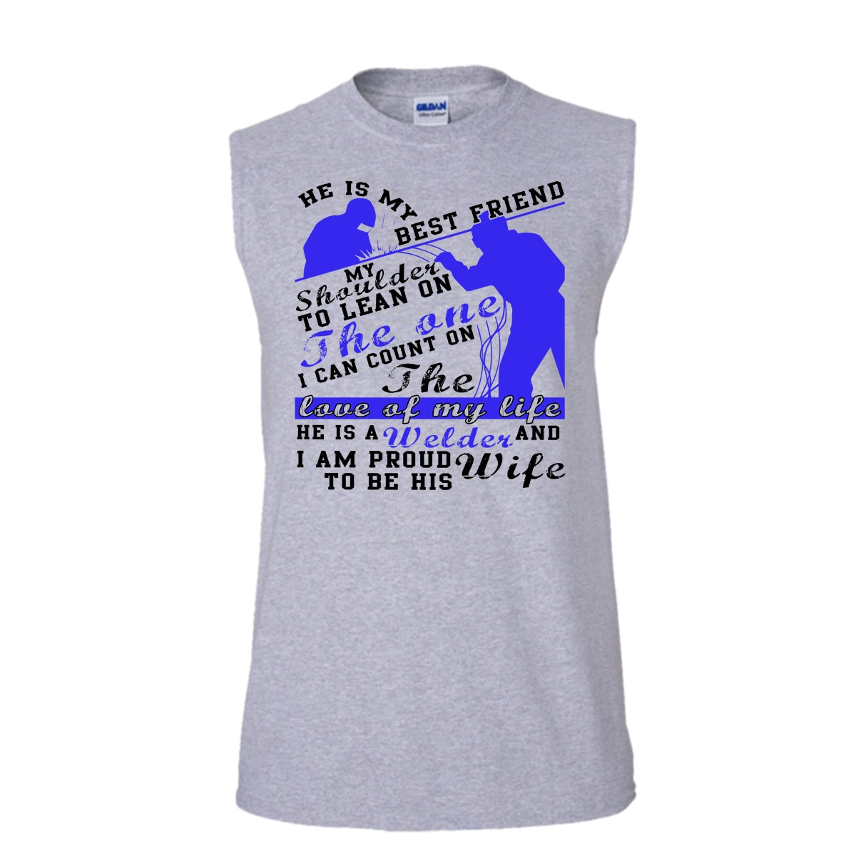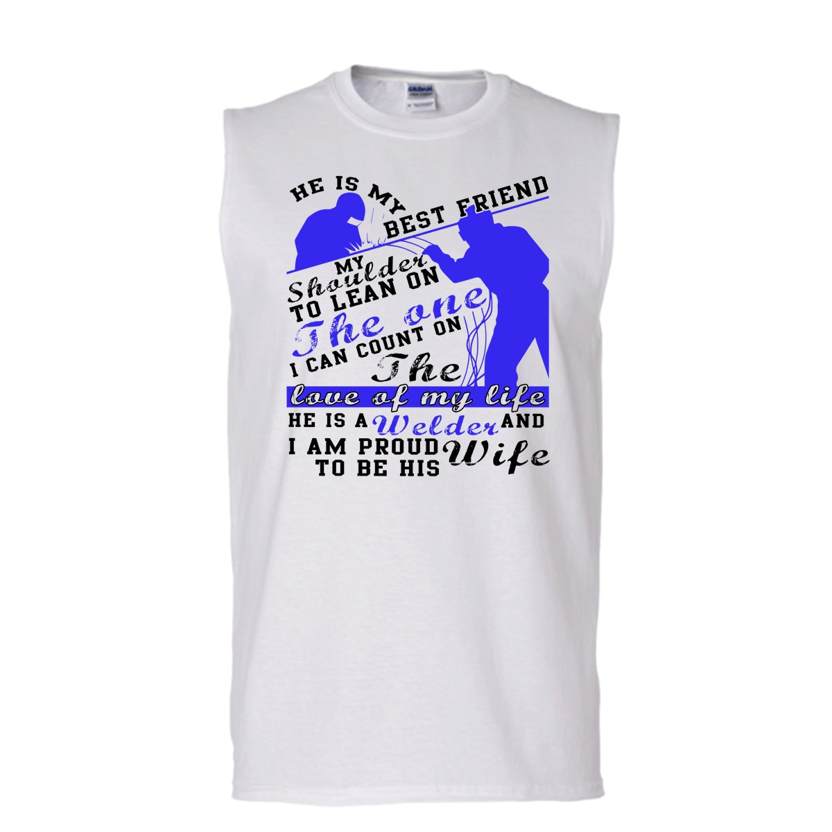 He Is My Best Friend T Shirt, Coolest Welder's Wife T Shirt, Awesome t-shirts (Men's Cotton Sleeveless)