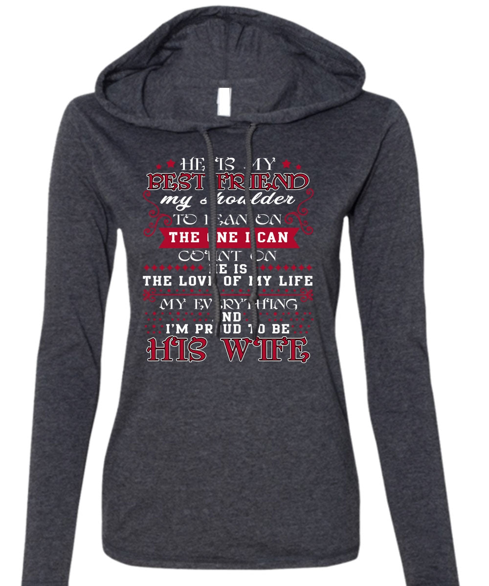 He Is My Best Friend T Shirt, I'm Proud To Be His Wife T Shirt (Anvil Ladies Ringspun Hooded)