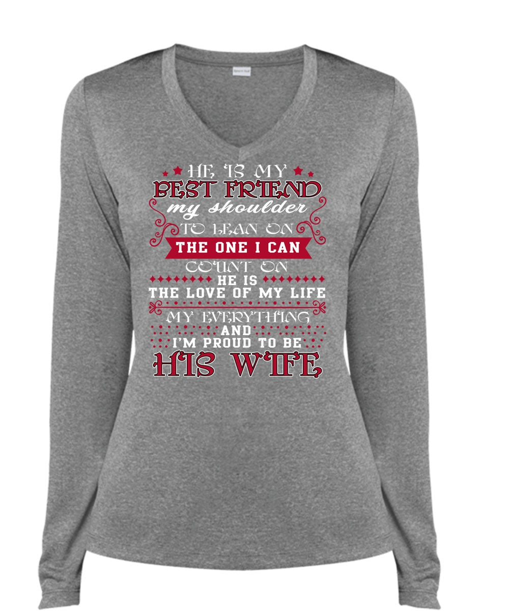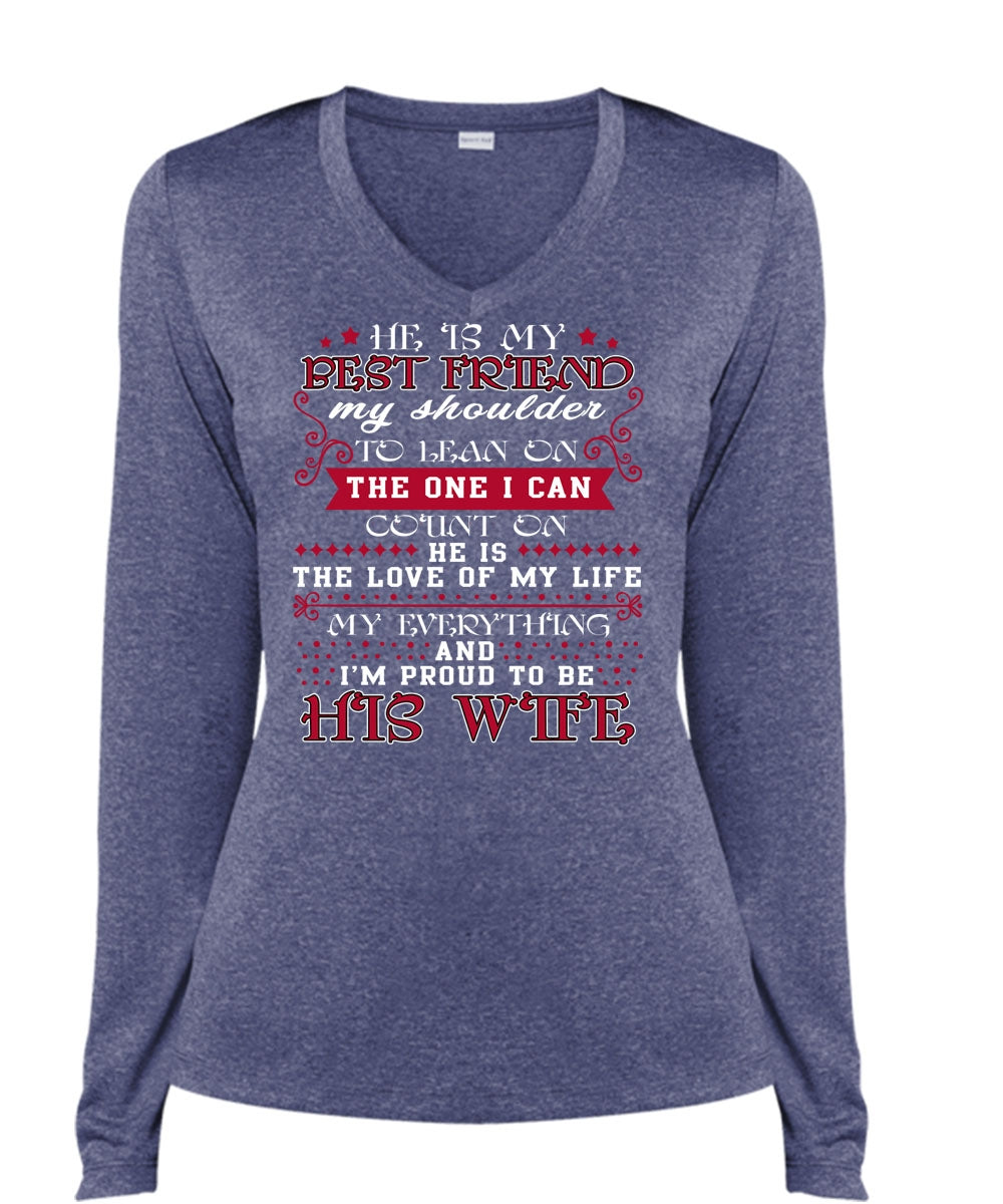 He Is My Best Friend T Shirt, I'm Proud To Be His Wife T Shirt, Cool Shirt (Ladies LS Heather V-Neck)