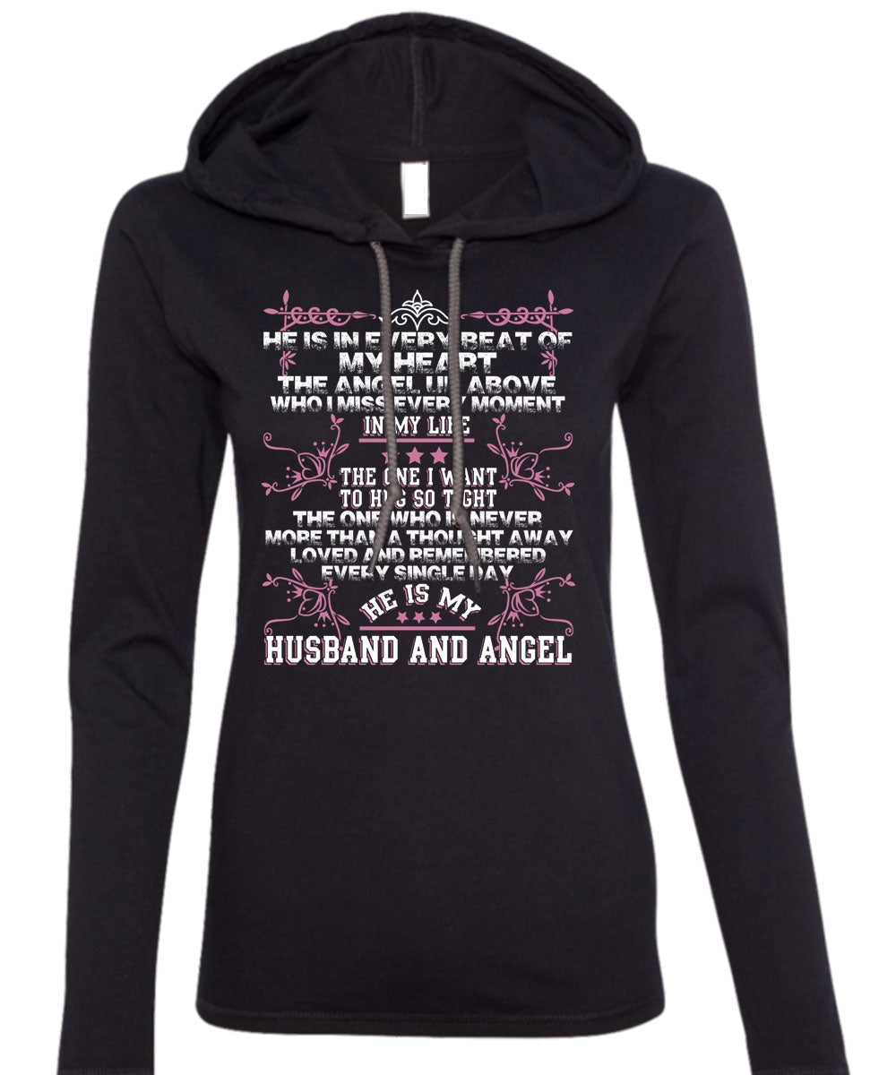 He Is My Husband And Angel T Shirt, Loved And Remembered T Shirt (Anvil Ladies Ringspun Hooded)