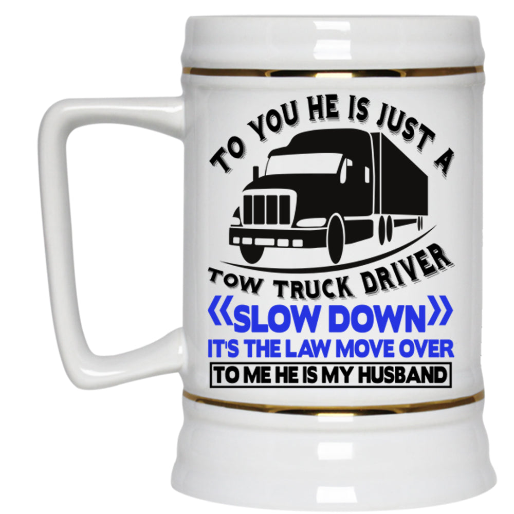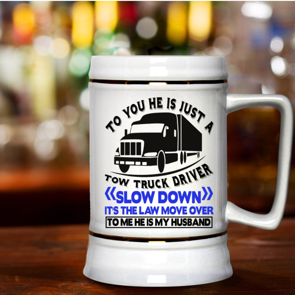 He Is My Husband Beer Stein 22oz, He Is Jus A Tow Truck Driver Beer Mug