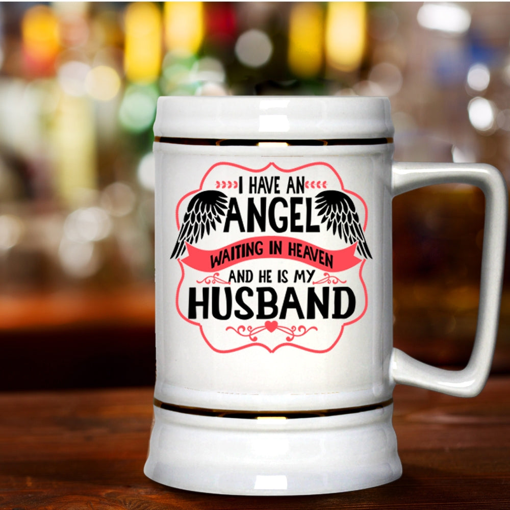 He Is My Husband Beer Stein 22oz, I Have An Angel Waiting In Heaven Beer Mug