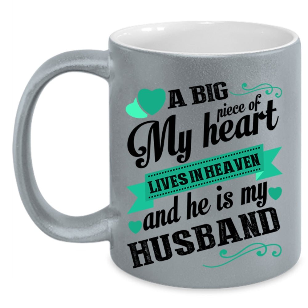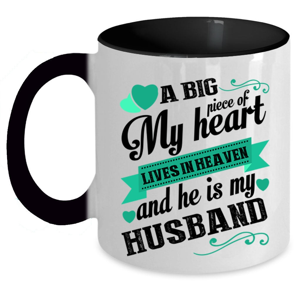 He Is My Husband Coffee Mug, A Big Piece Of My Heart Lives In Heaven Accent Mug