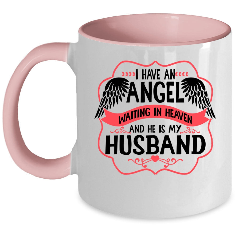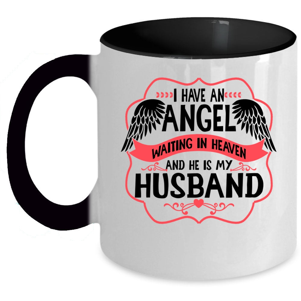 He Is My Husband Coffee Mug, I Have An Angel Waiting In Heaven Accent Mug