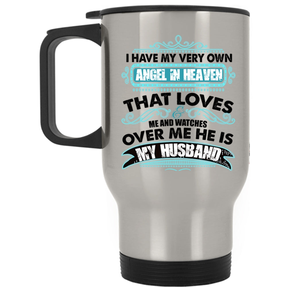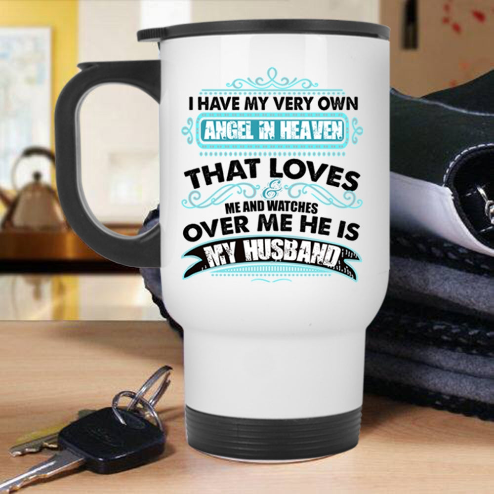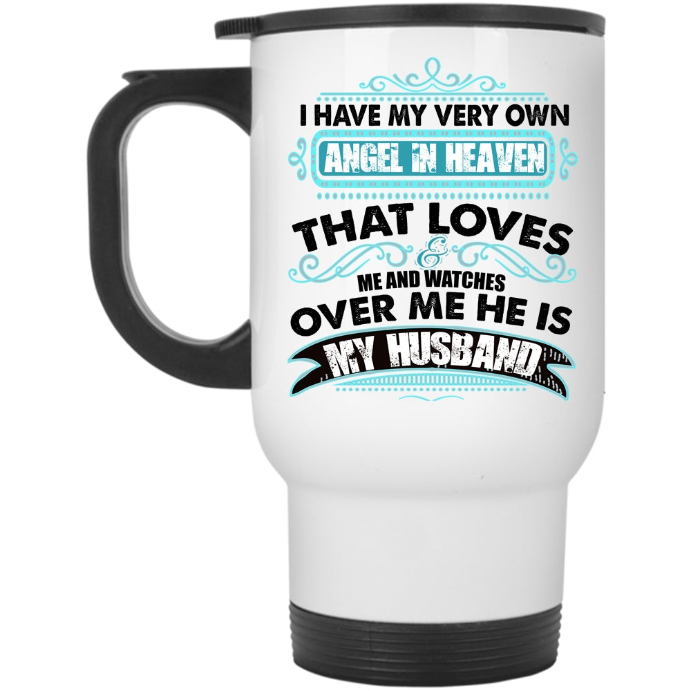 He Is My Husband Travel Mug, I Have My Very Own Angel In Heaven Mug