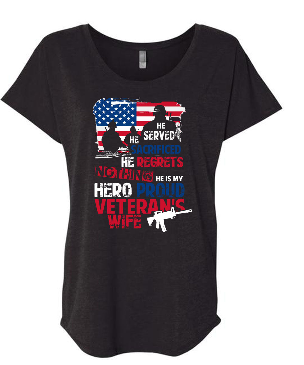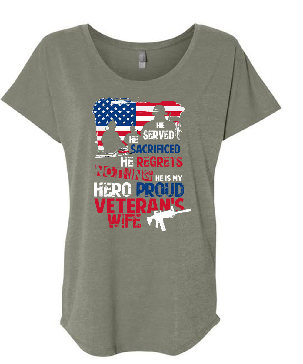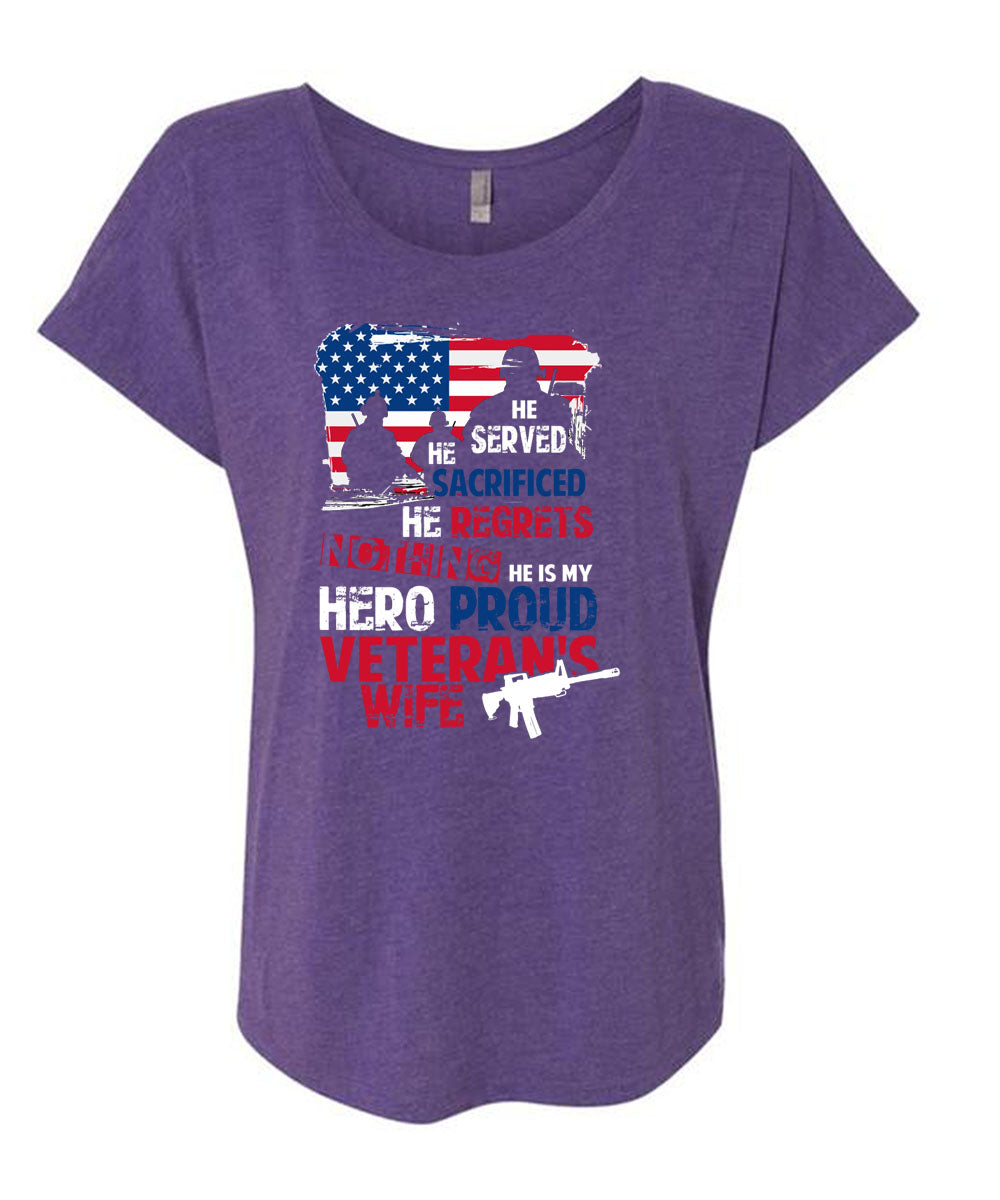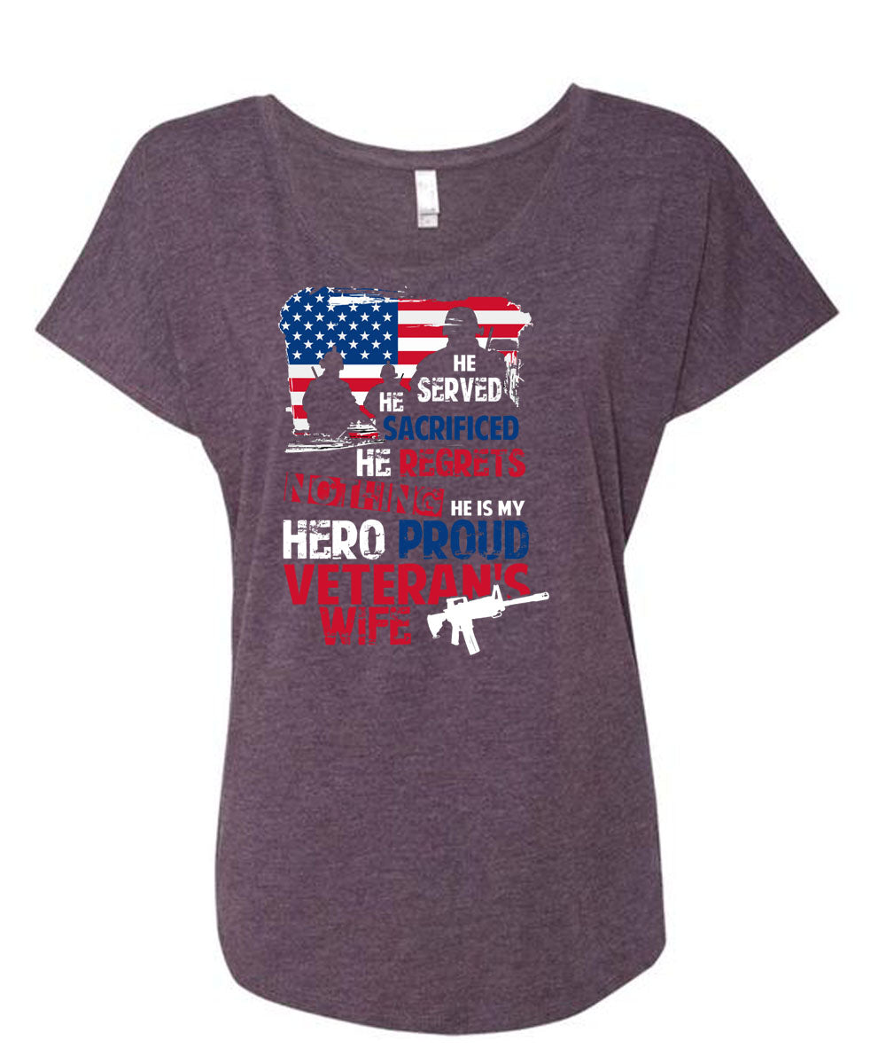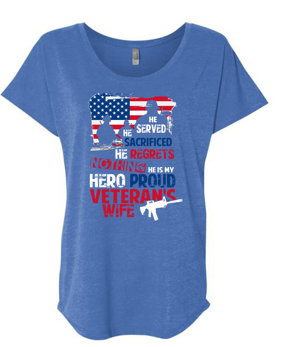 He Is Proud Veteran's Wife T Shirt, He Served He Sacrificed T Shirt, Cool Shirt (Ladies' Triblend Dolman Sleeve)