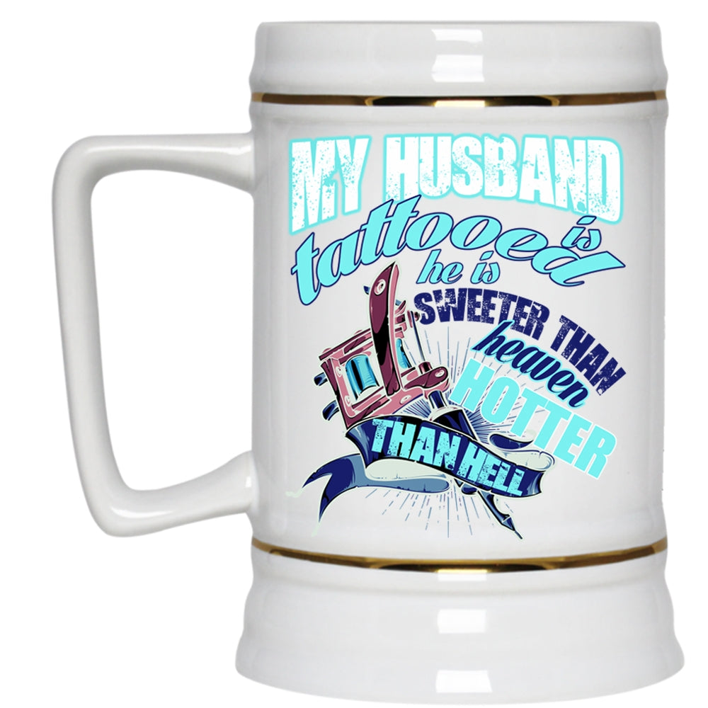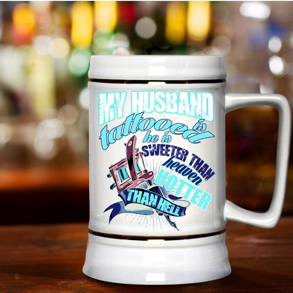 He Is Sweeter Than Heaven Beer Stein 22oz, My Husband Is Tattooed Beer Mug