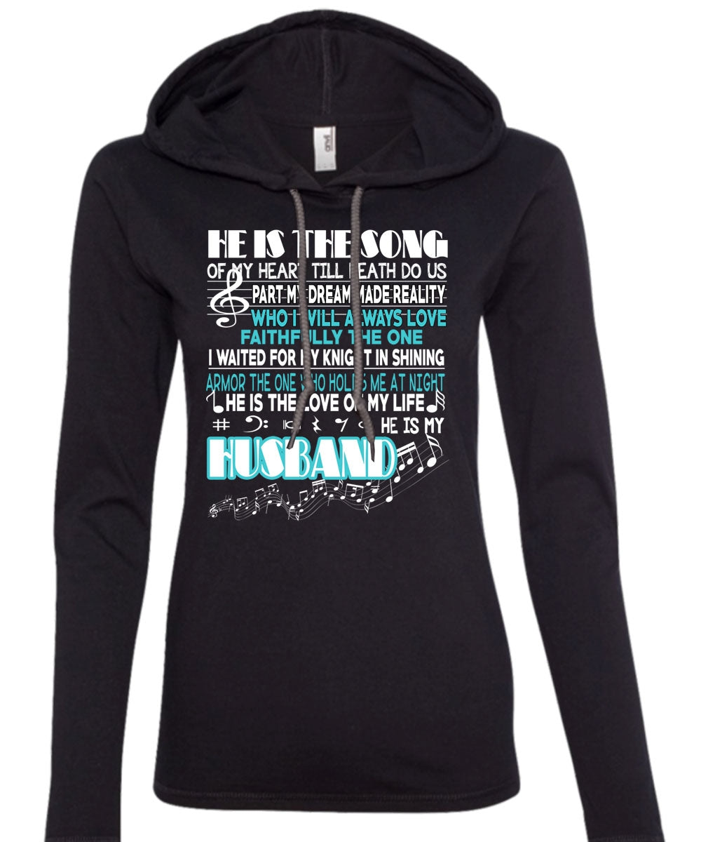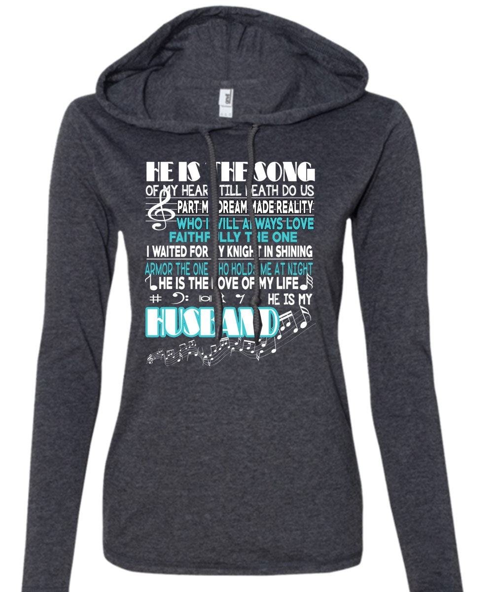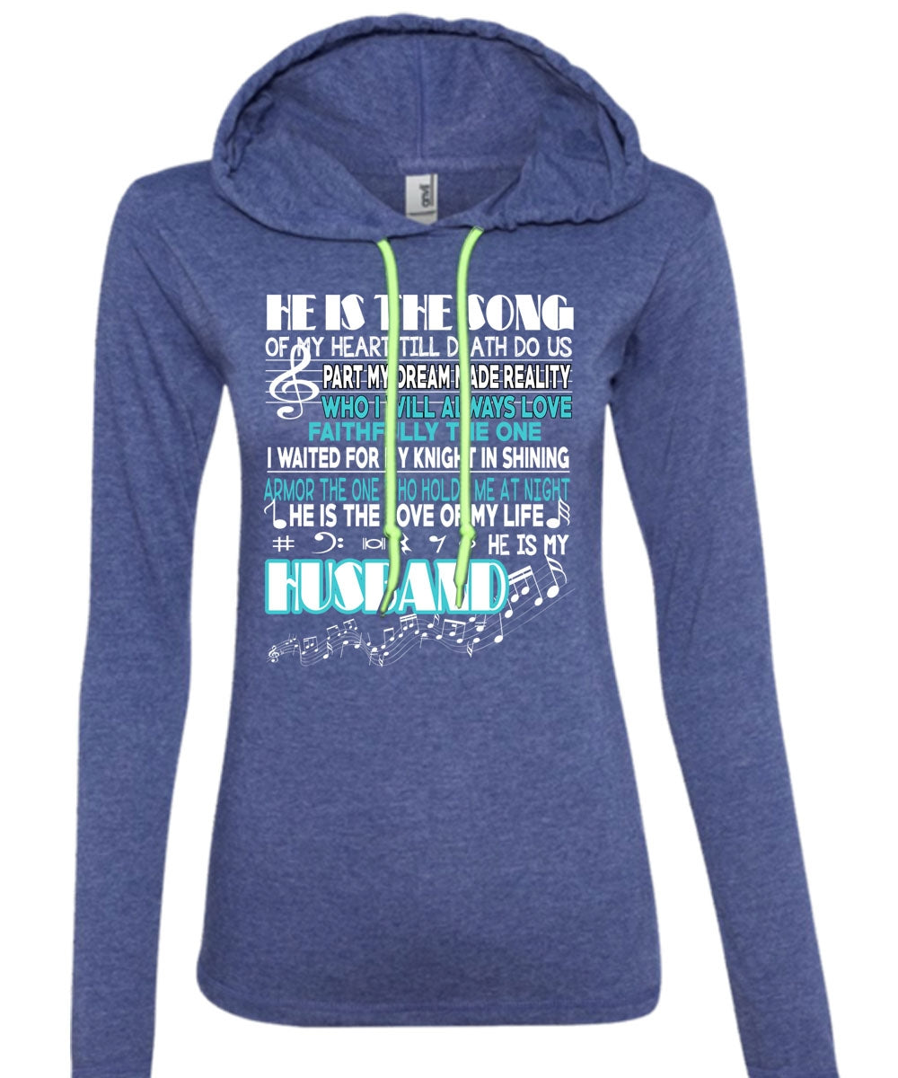 He Is The Song T Shirt, He Is My Husband T Shirt (Anvil Ladies Ringspun Hooded)