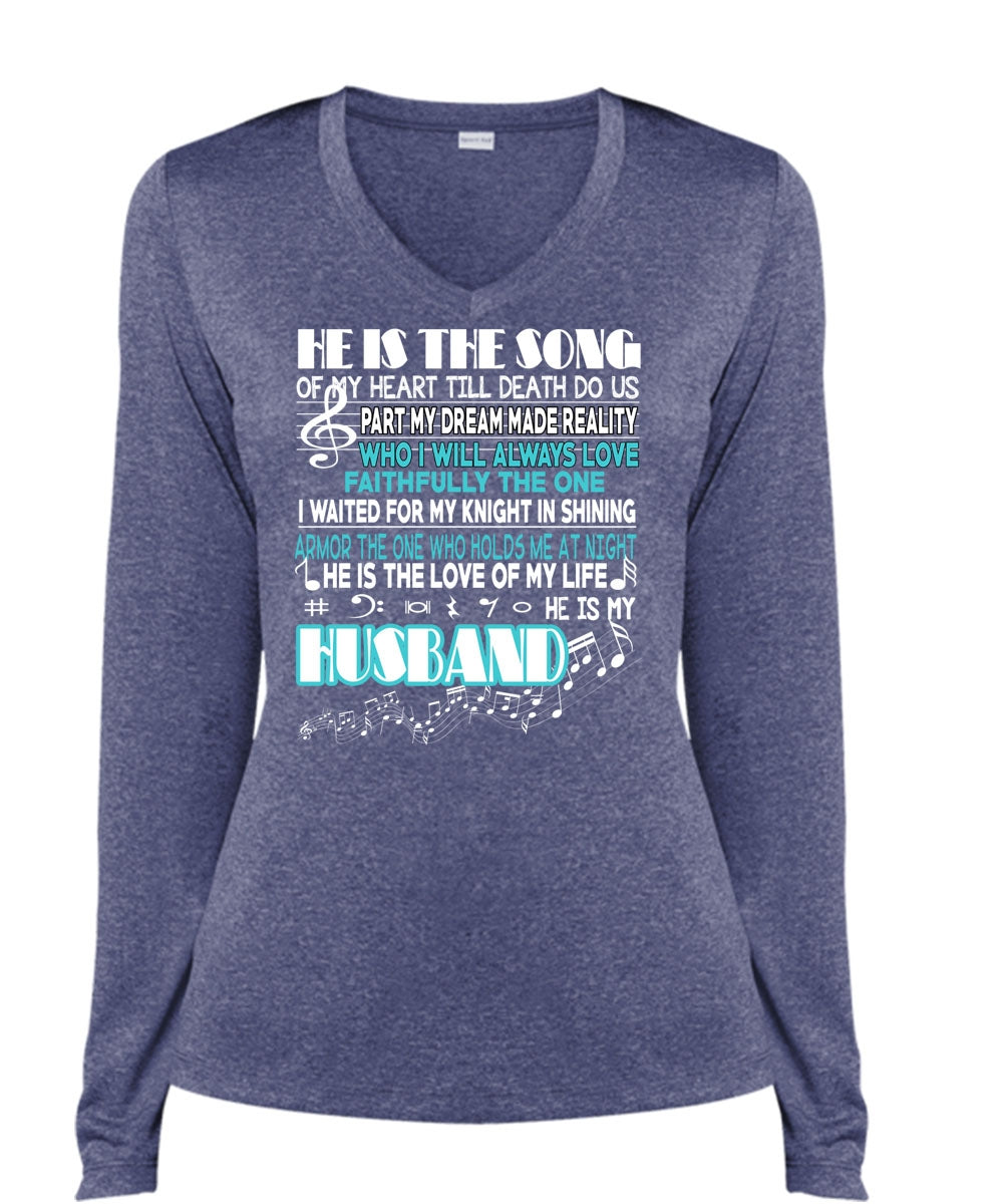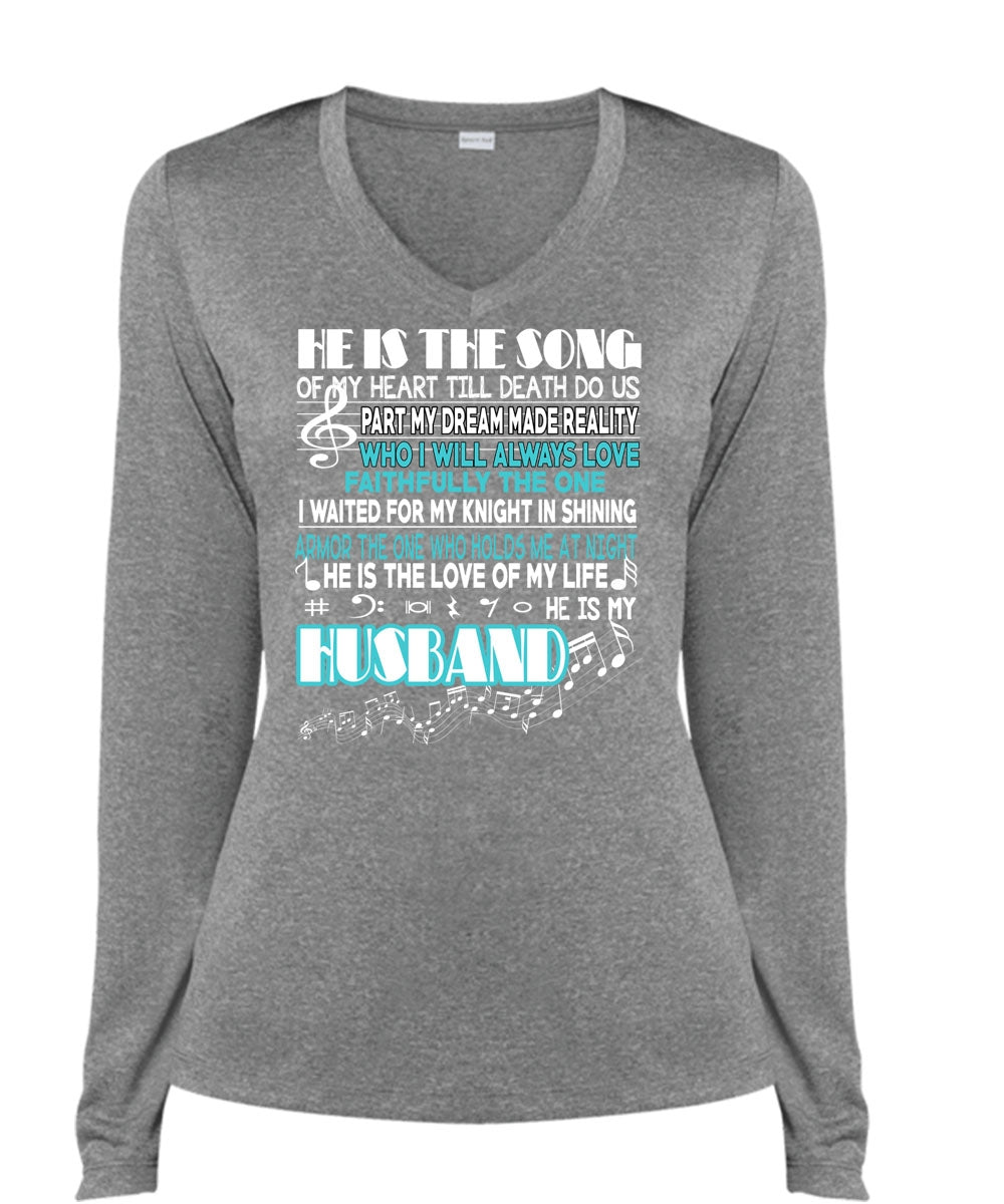 He Is The Song T Shirt, He Is My Husband T Shirt, Cool Shirt (Ladies LS Heather V-Neck)