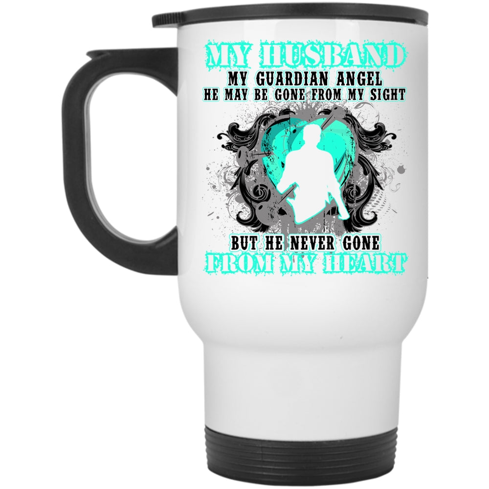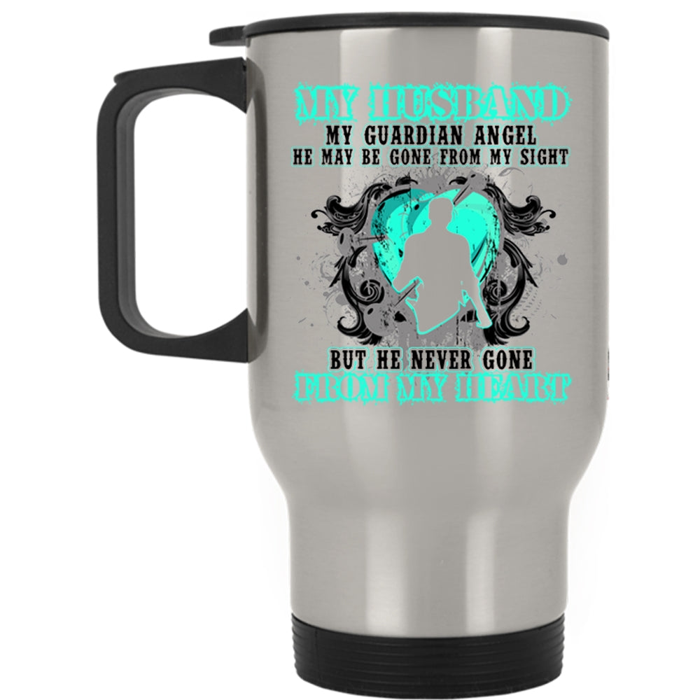He Never Gone From My Heart Travel Mug, My Husband My Guardian Angel Mug