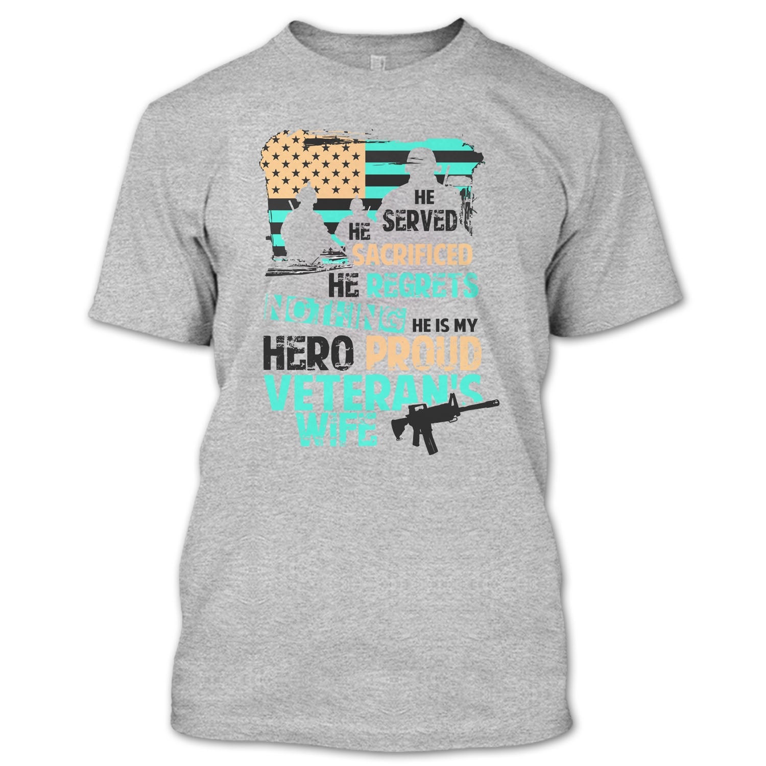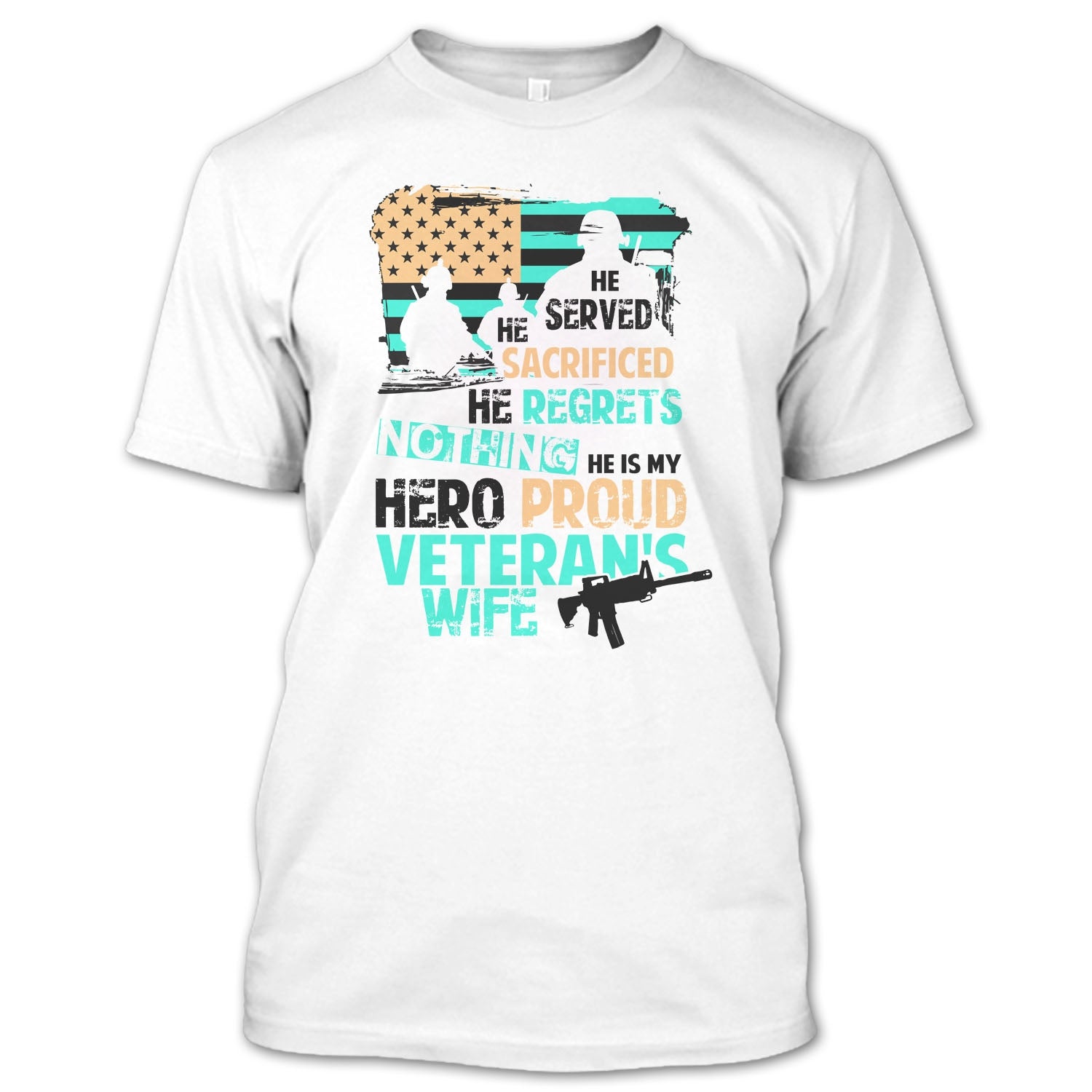 He Regrets Nothing T Shirt, Coolest Veteran Wife T Shirt