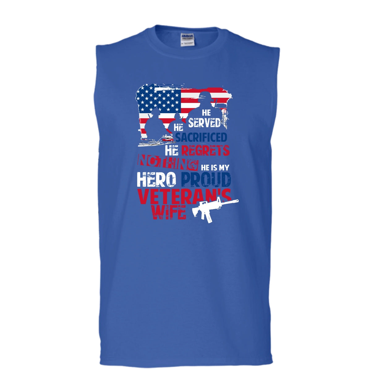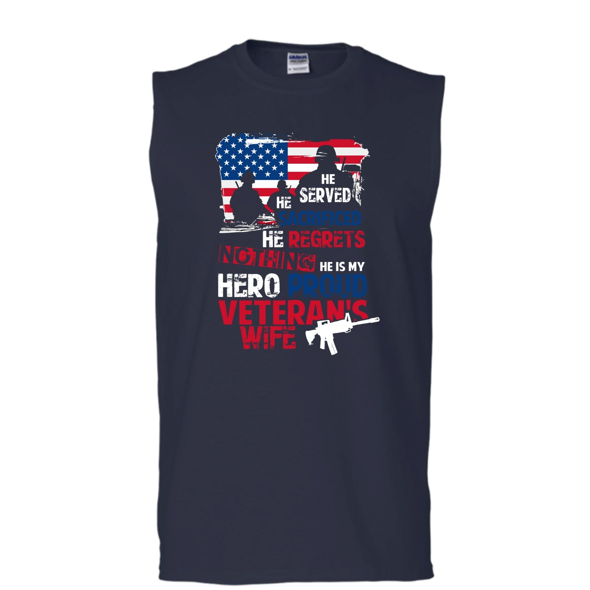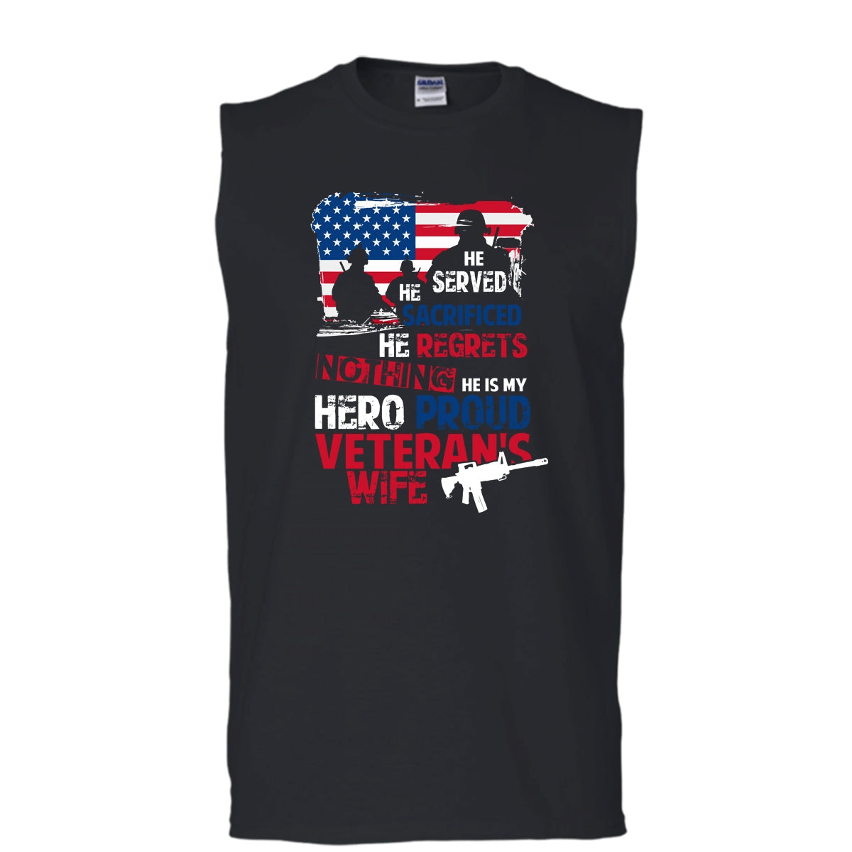 He Regrets Nothing T Shirt, Proud Veteran Wife T Shirt, Cool T Shirt (Men's Cotton Sleeveless)