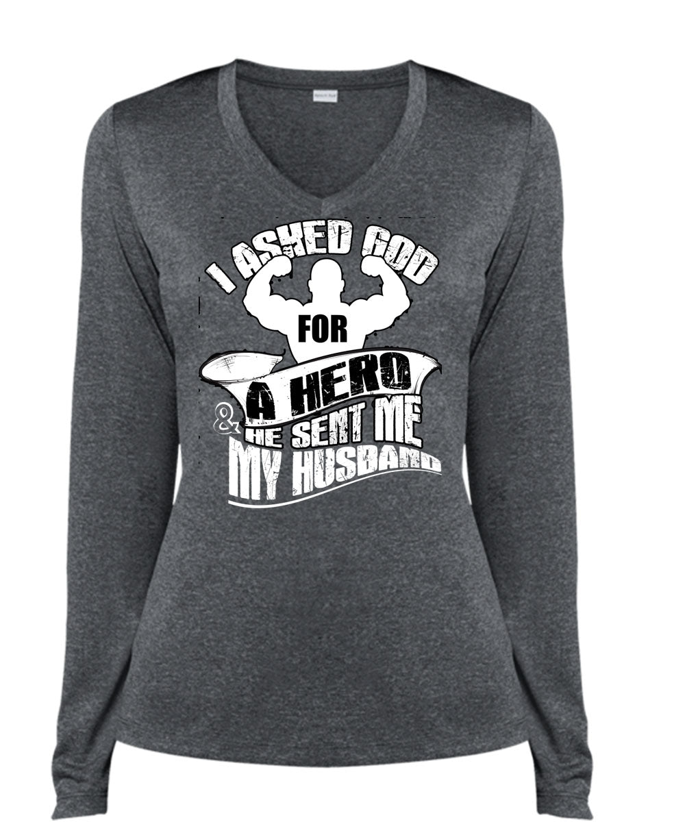 He Sent Me My Husband T Shirt, Being A Husband T Shirt, Cool Shirt (Ladies LS Heather V-Neck)