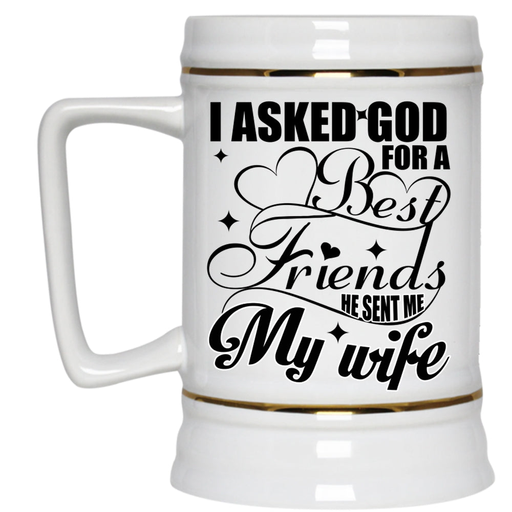 He Sent Me My Wife Beer Stein 22oz, I Asked God For A Best Friends Beer Mug