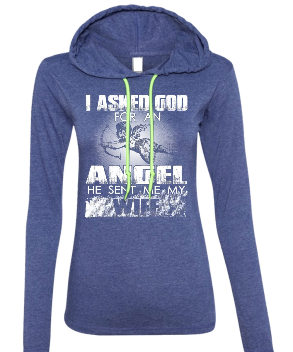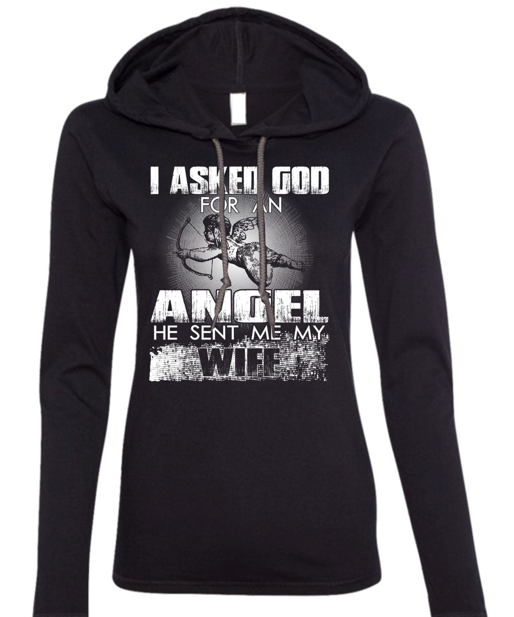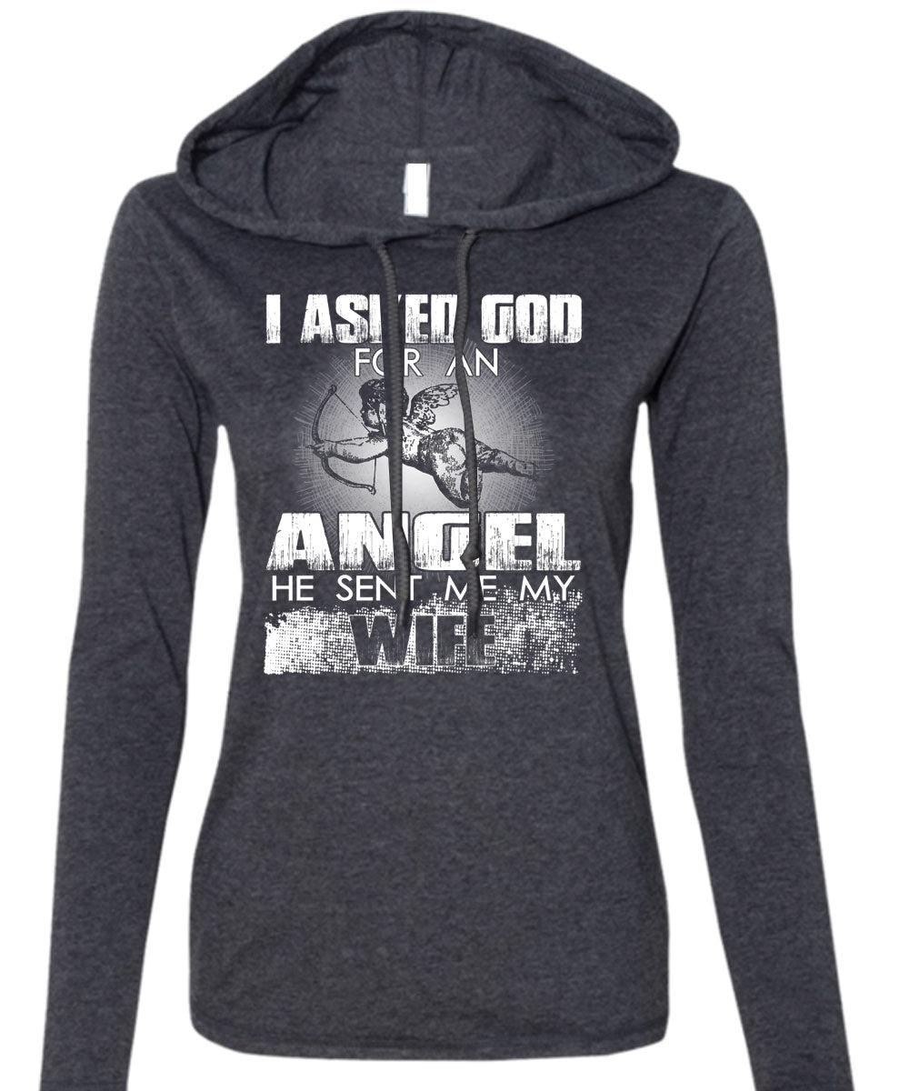 He Sent Me My Wife T Shirt, God For An Angel T Shirt (Anvil Ladies Ringspun Hooded)