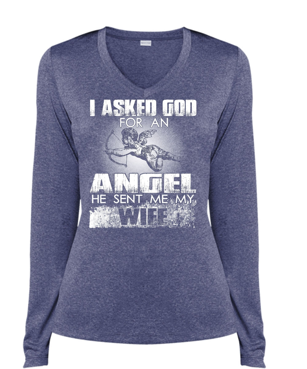 He Sent Me My Wife T Shirt, God For An Angel T Shirt, Cool Shirt (Ladies LS Heather V-Neck)
