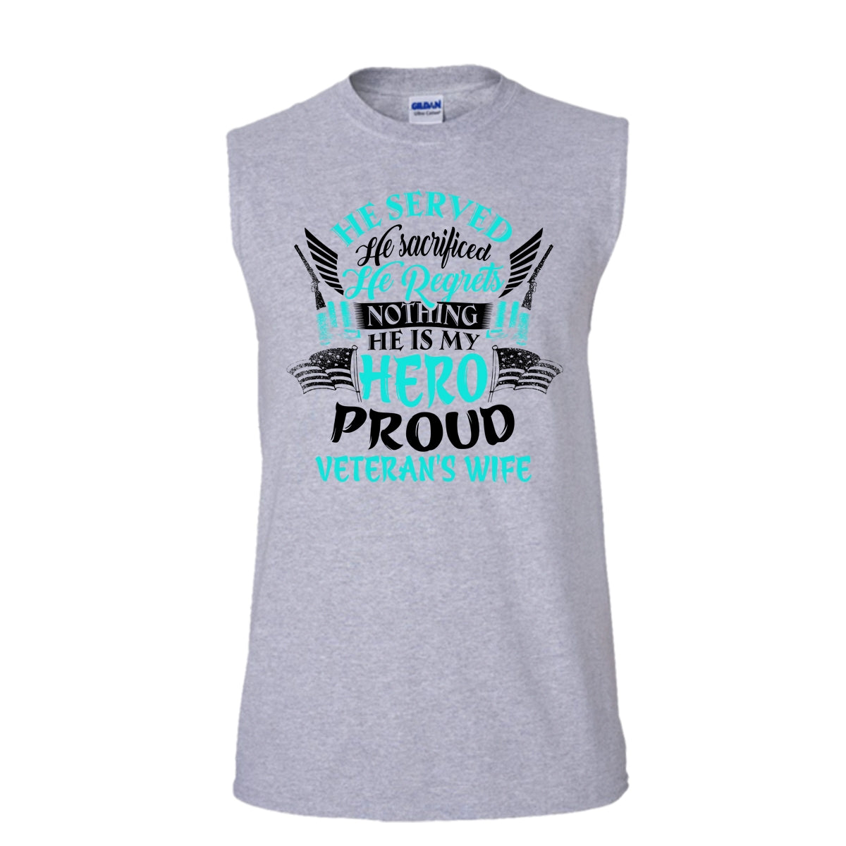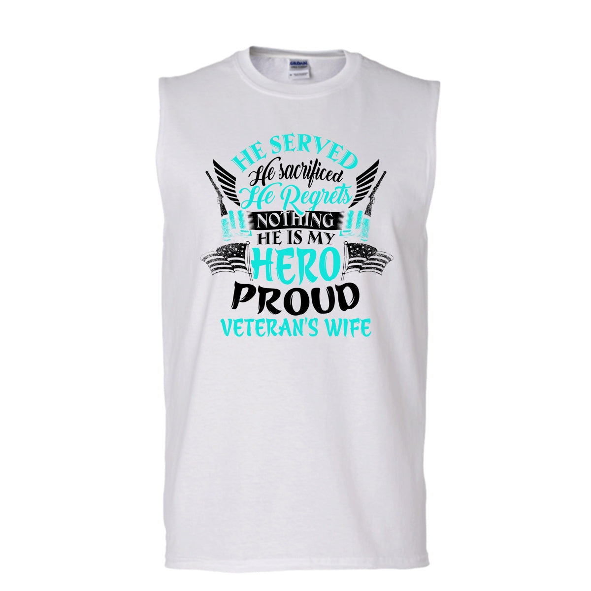 He Served Shirt, Prou Veteran's Wife Shirt, Cool Veteran Husband Shirt (Men's Cotton Sleeveless)